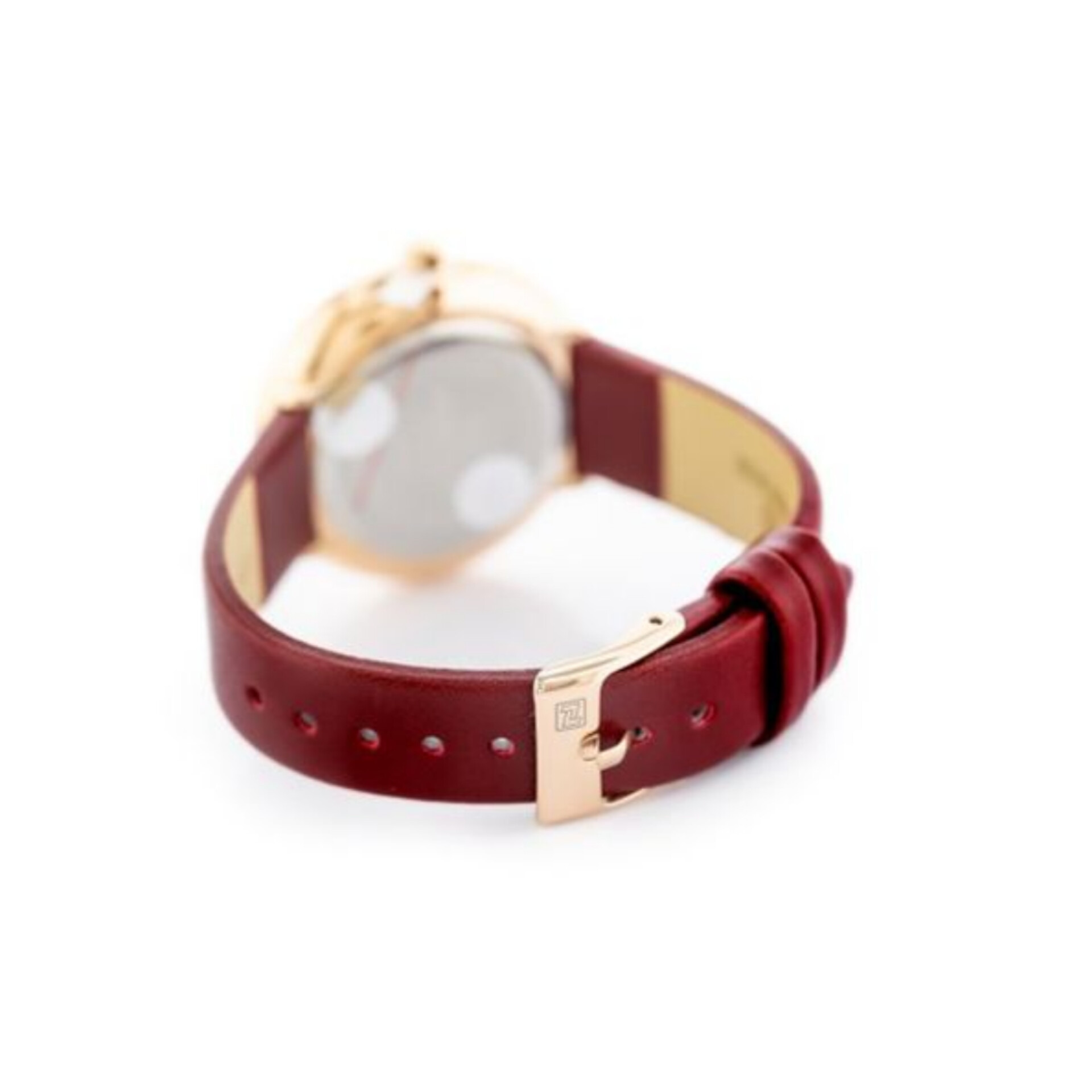 بدنه استیل رزگلد رنگ ثابت با بند چرمی نرم قرمز رنگ
