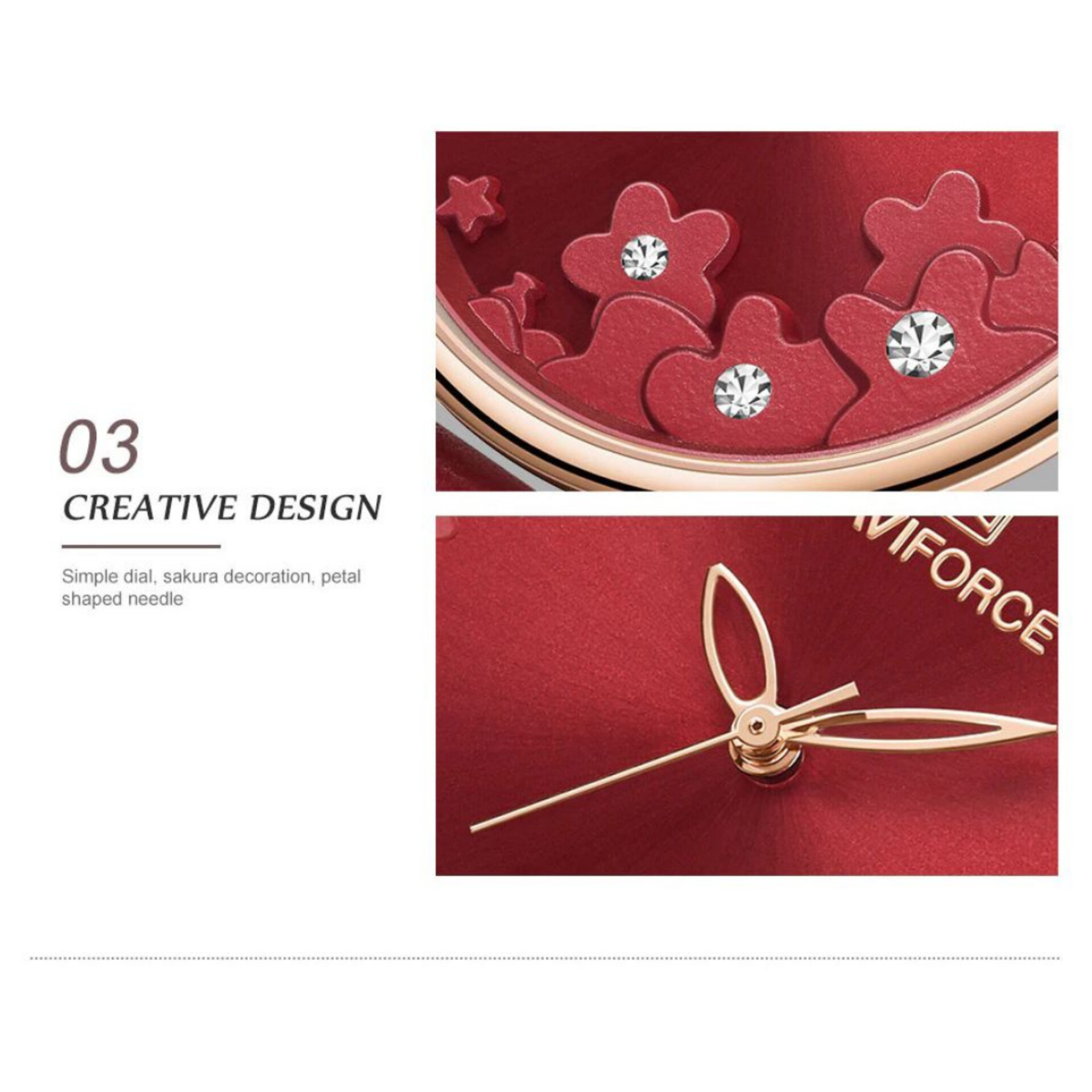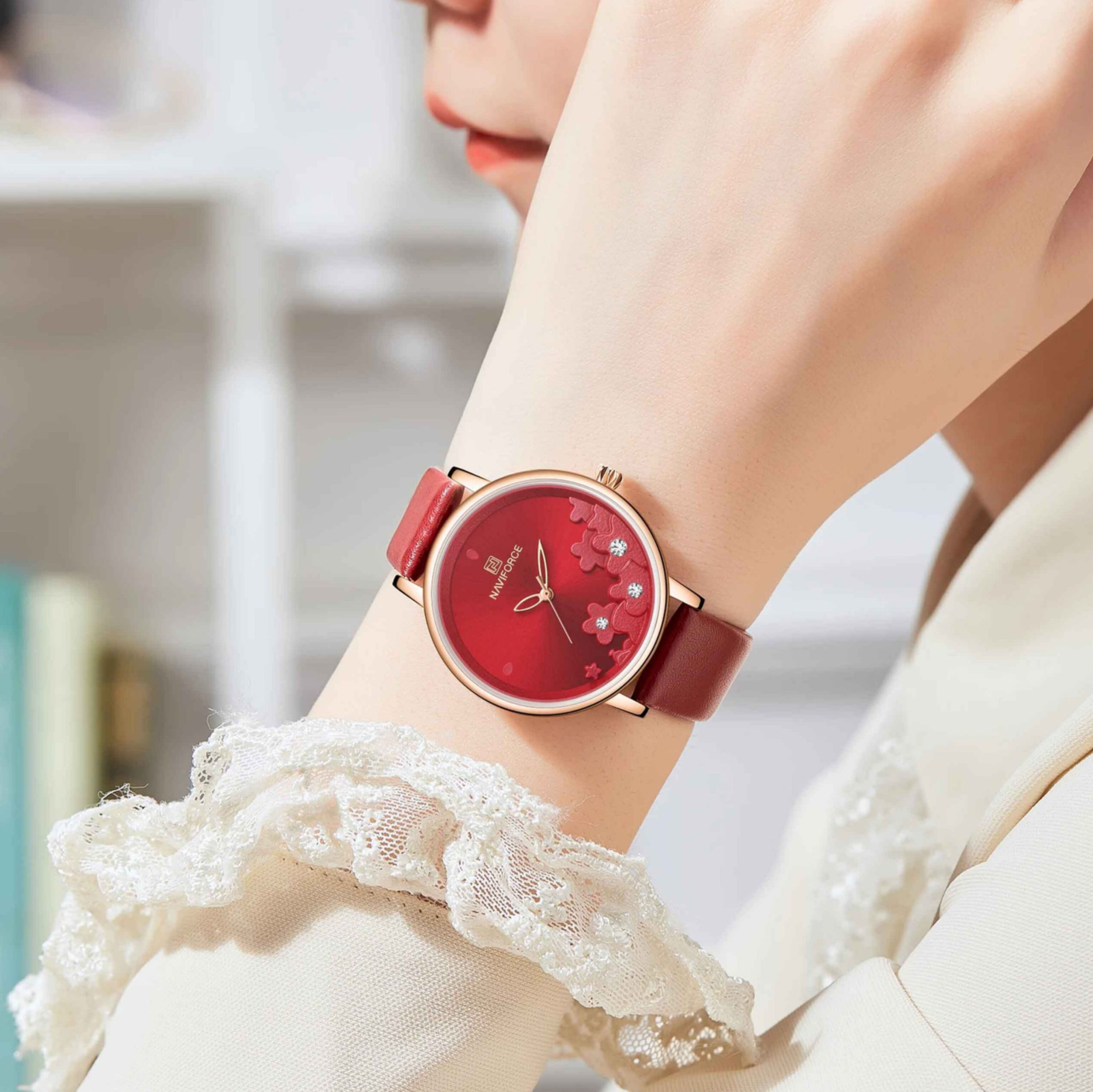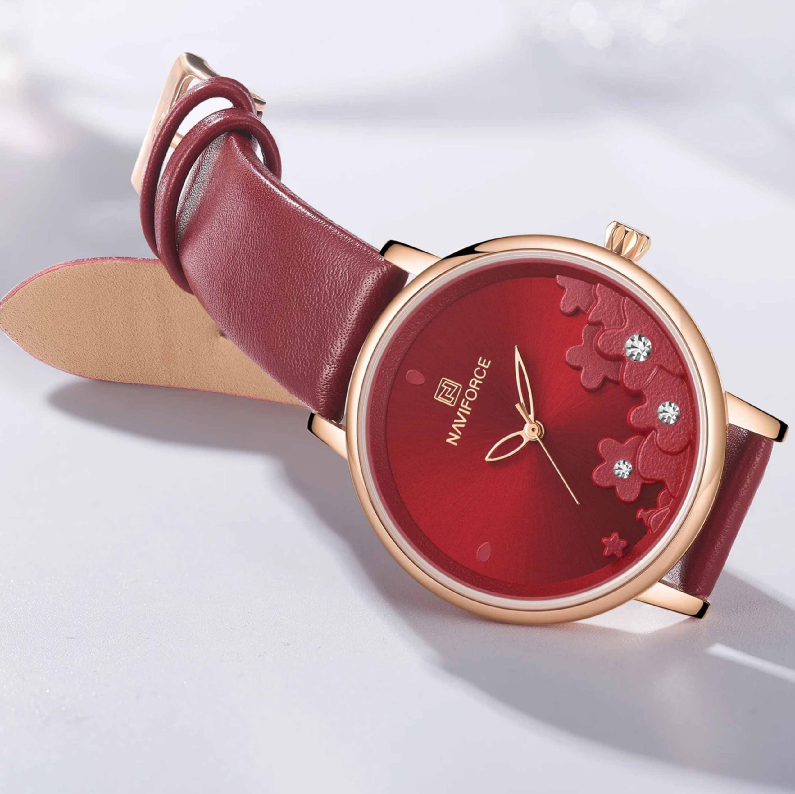 ساعت زنانه NAVIFORCE موتور ژاپن بند چرمی سرخ