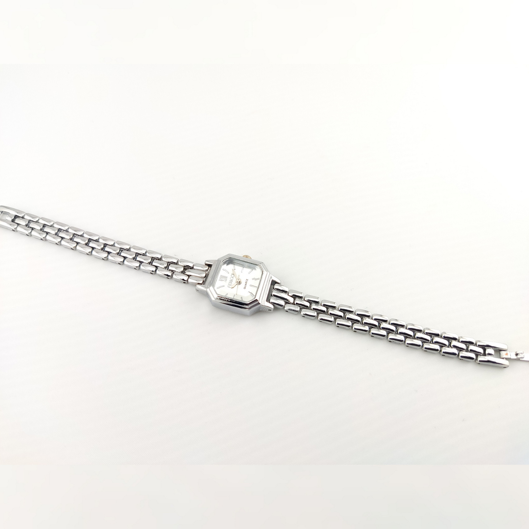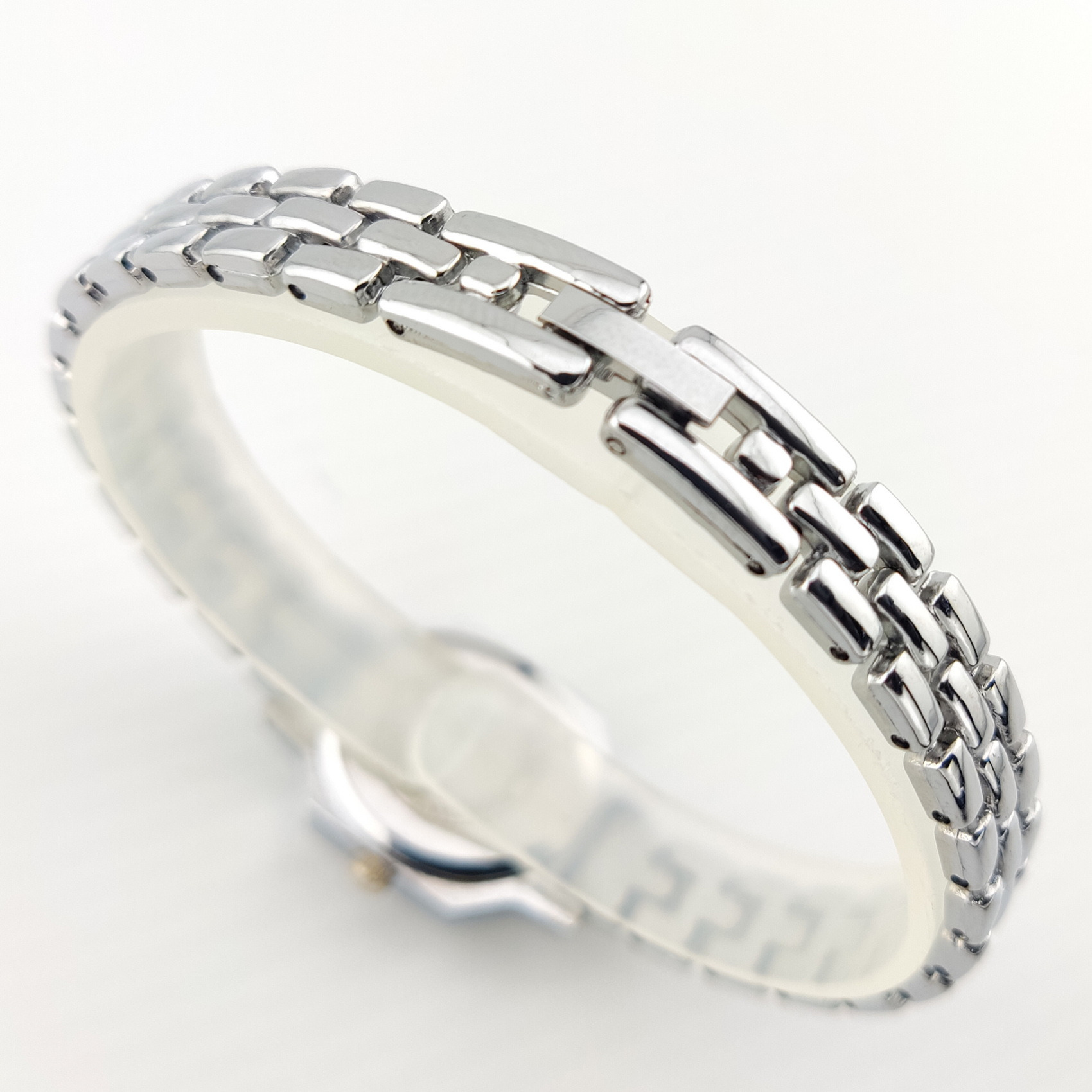 بدنه و بند استیل فلزی به رنگ نقره ای براق با قفل دستبندی