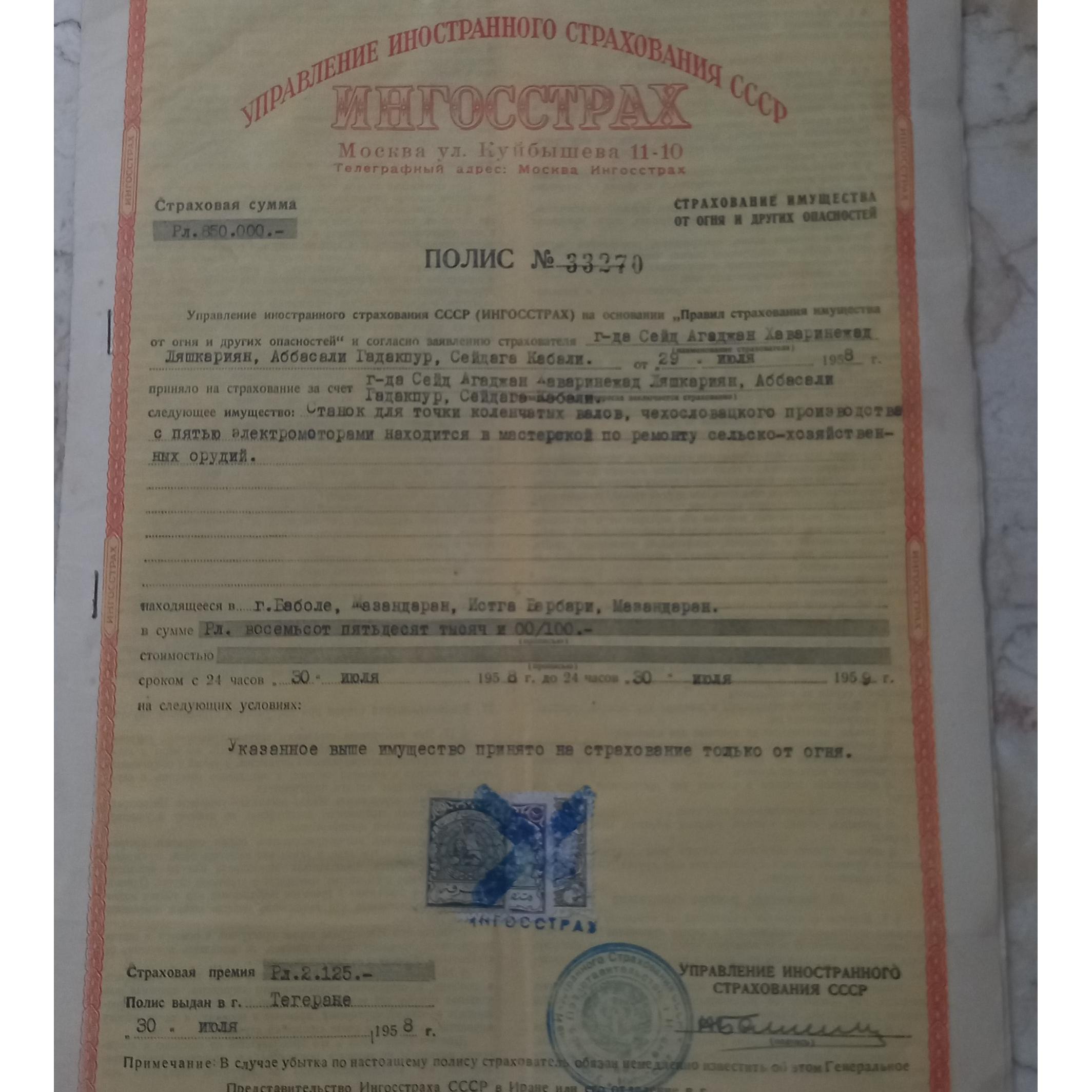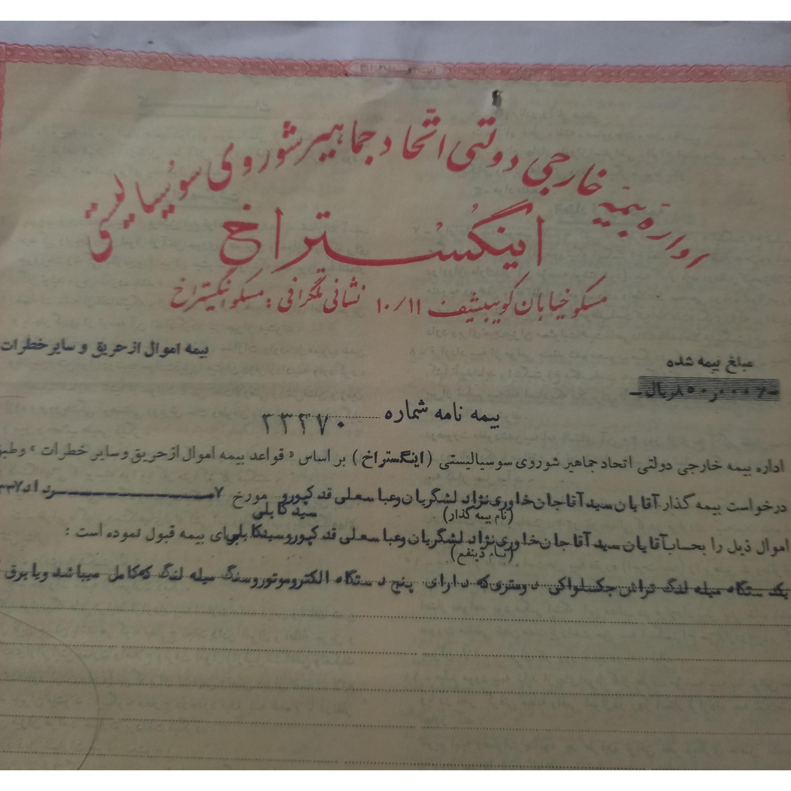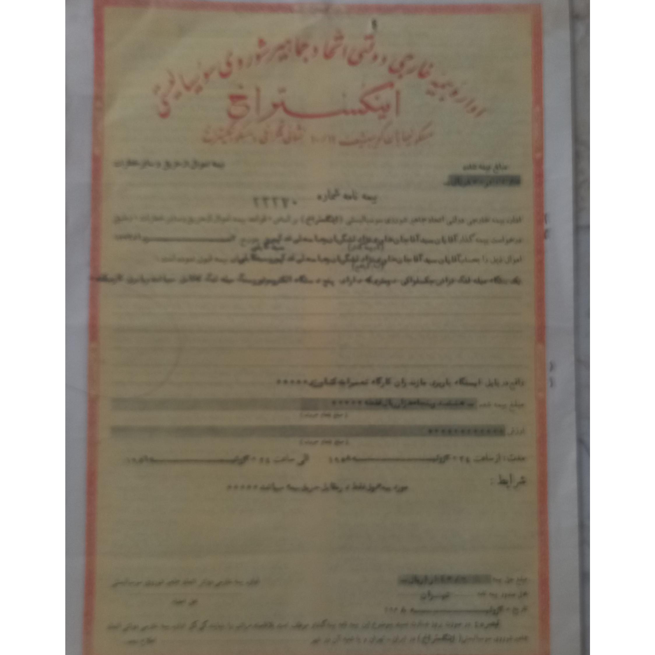 بیمه نامه قدیمی دوران پهلوی