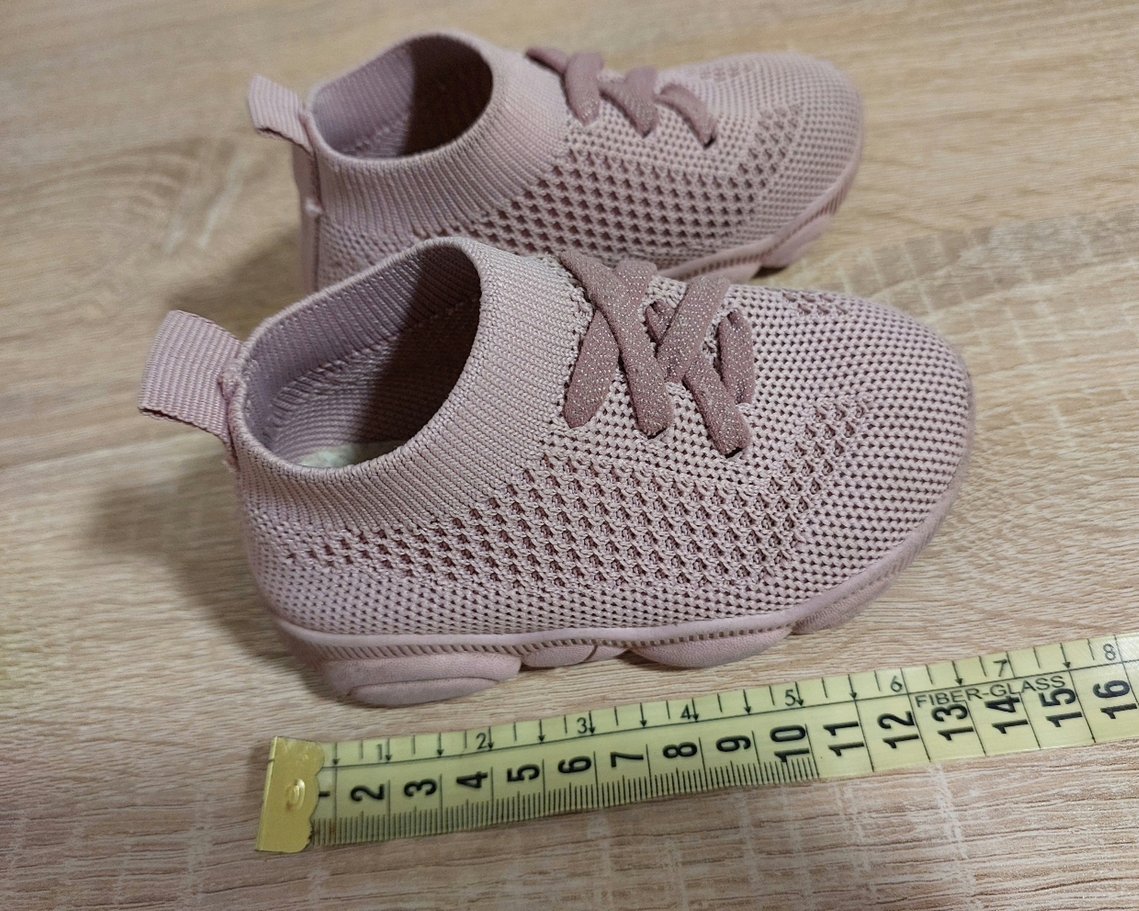 زیر کفش سایز 22 زده ولی من متر گذاشتم که مشخص باشه اندازه حدودا میشه برای 1 تا 2 سال