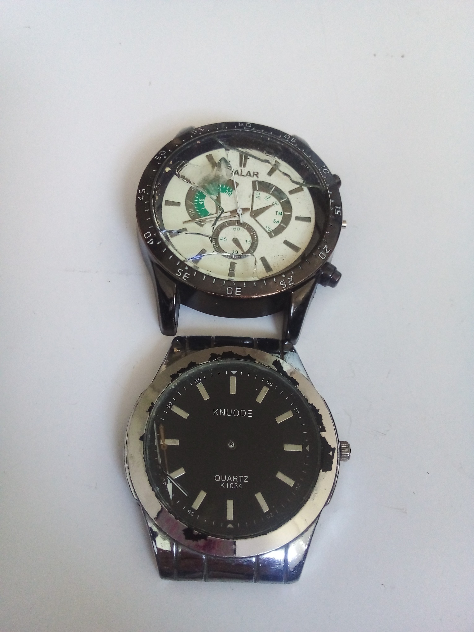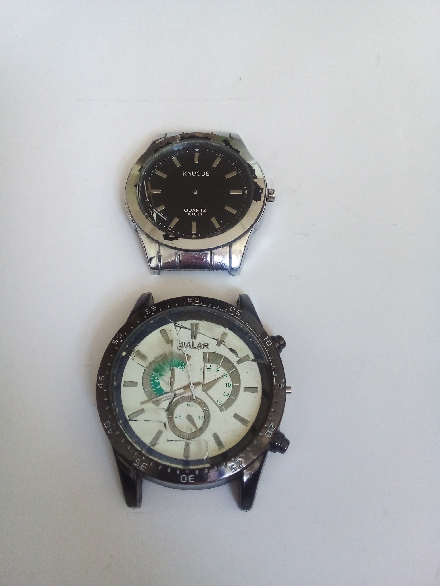 سلام وروز بخیر قاب بدنه های ساعت مچی که هردو عقربه وصفحه وپشت صفحه وموتور دارند شیشه وسرکوک یکی سالم هست طبق تصاویر دوستان خریدار قبل از اقدام به خرید حتمن به تصاویر وتوضیحات دقت فرمایید قبل از خرید هر سوالی بود در خدمتم وتوضیحات را کامل بخوانید وثبت فیدبک
