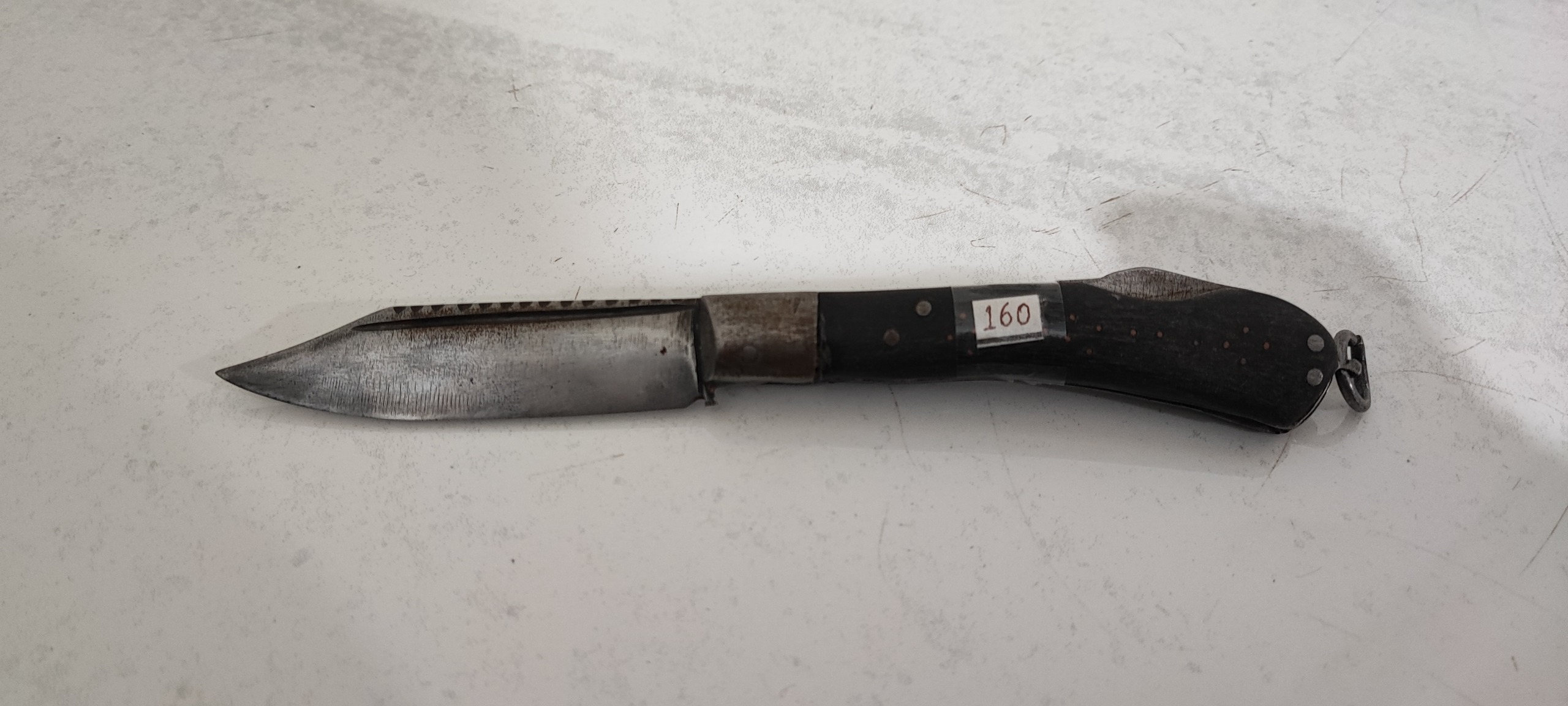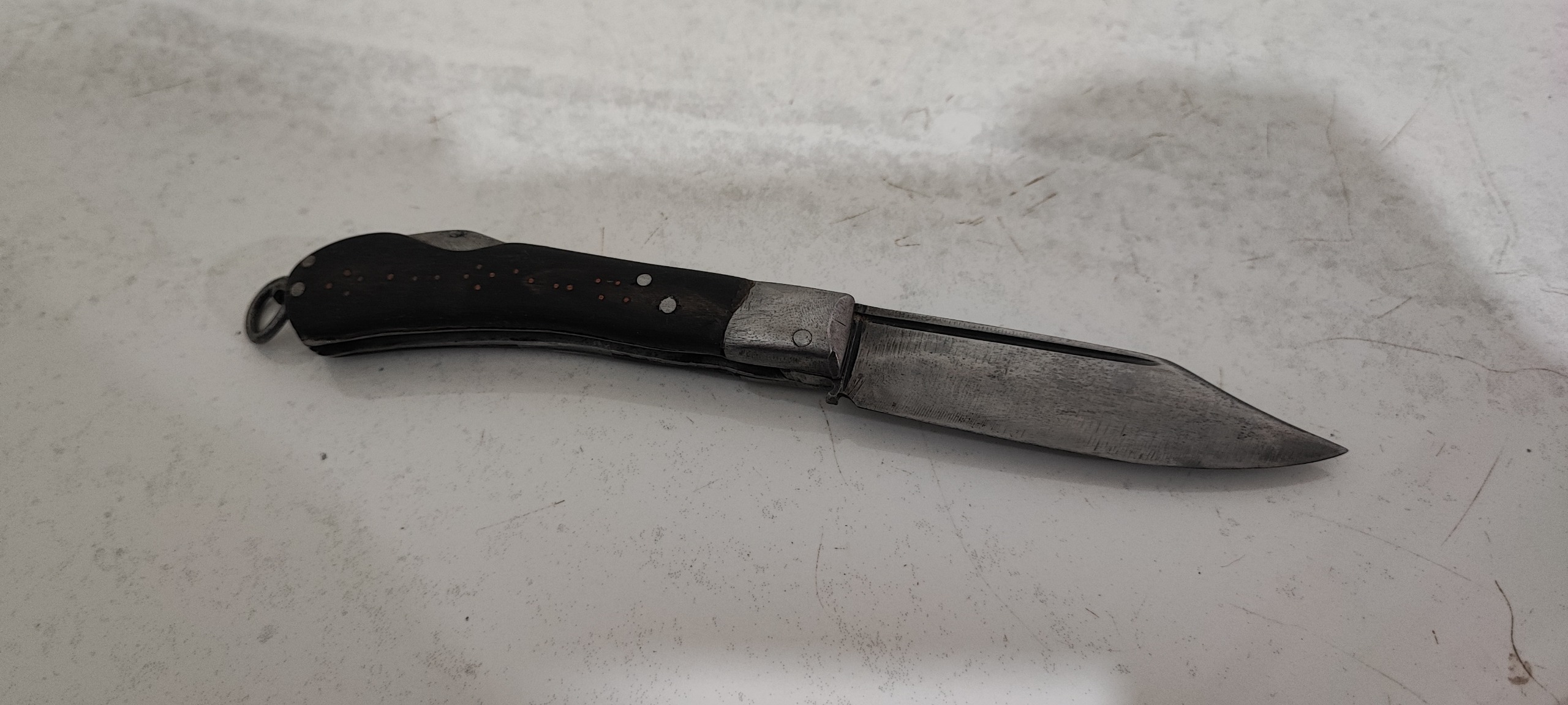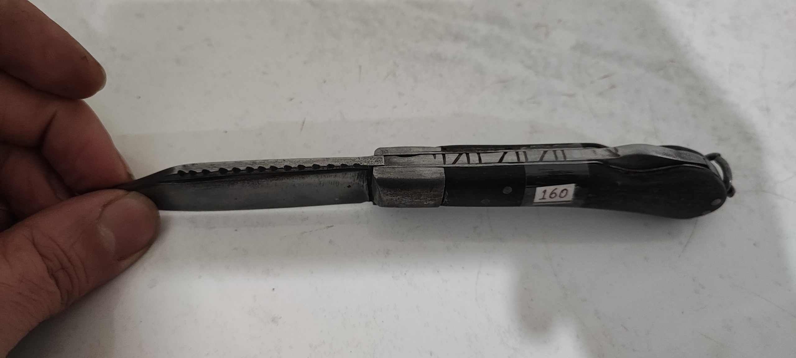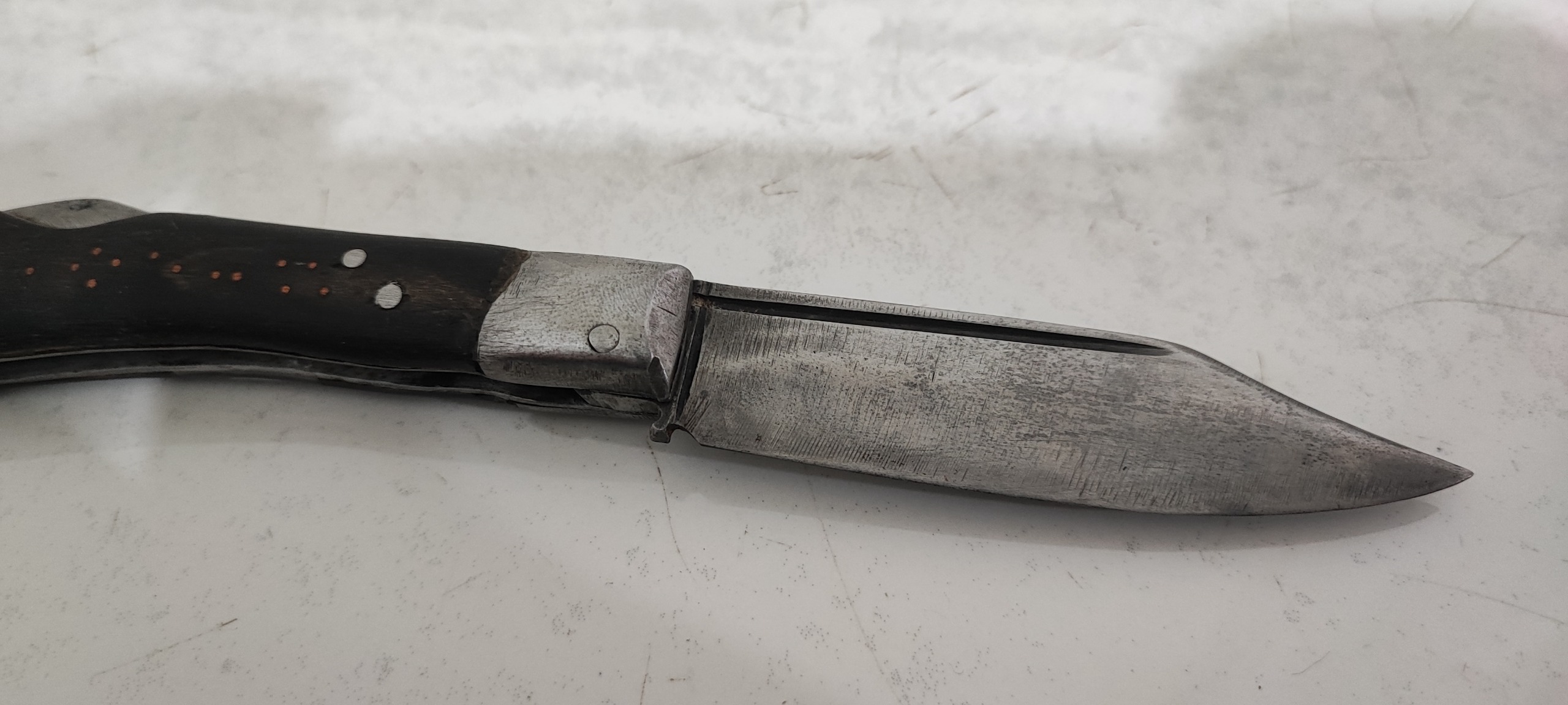 19/5 سانت طول، تیغ از فنر و دسته شاخ، اندک لقی داره، خوشدست و کمیاب و قدیمی و کلکسیونی