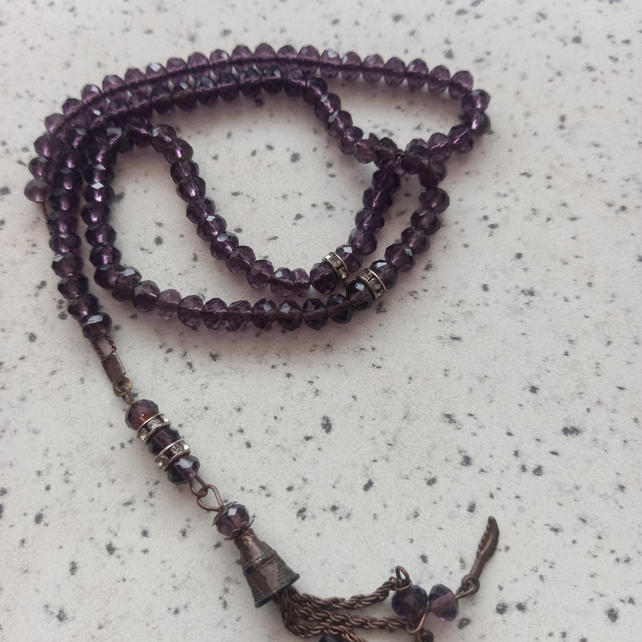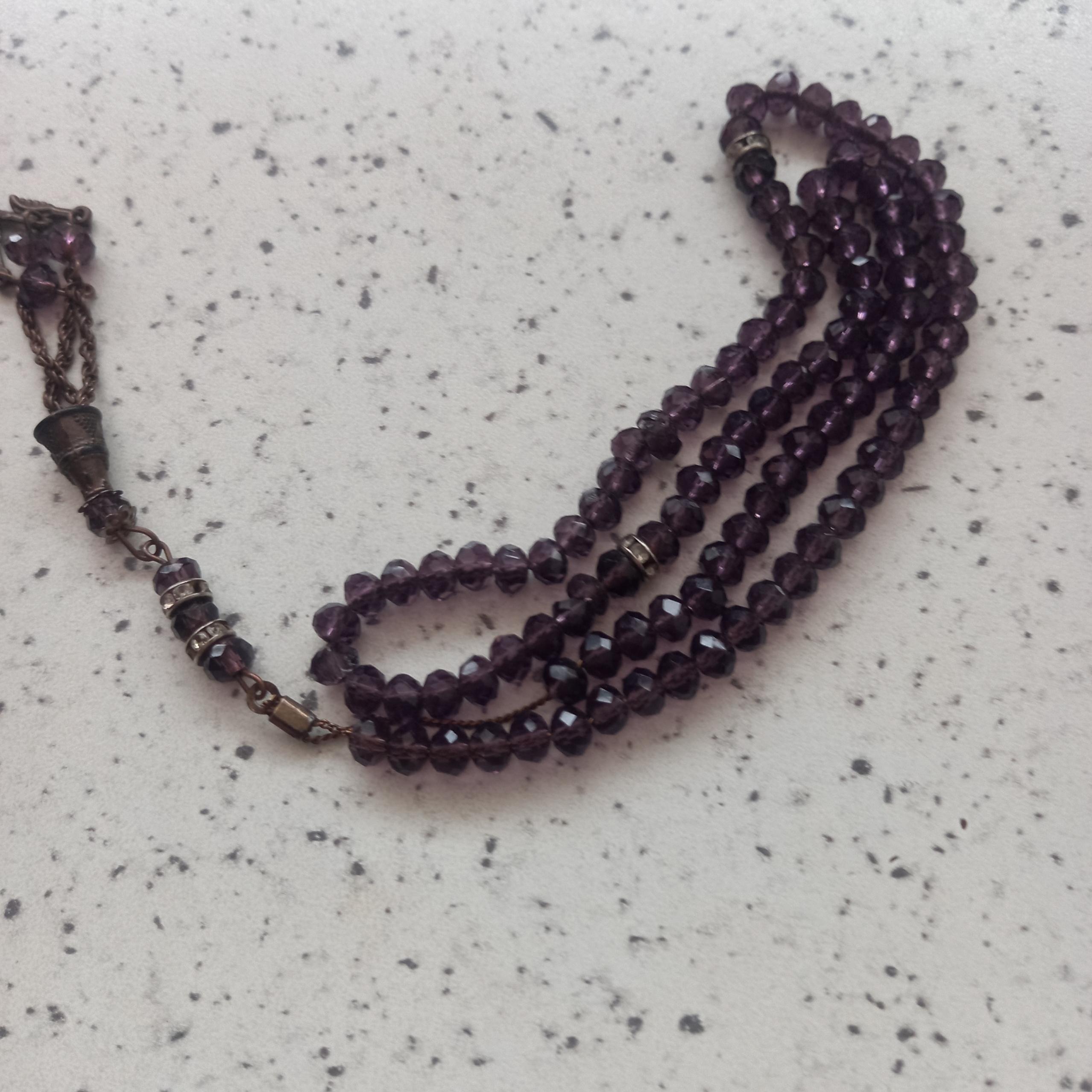 تسبیح جواهری کامل از سنگ اماتیست طبیعی دست ساز زیبا و کلکسیونی