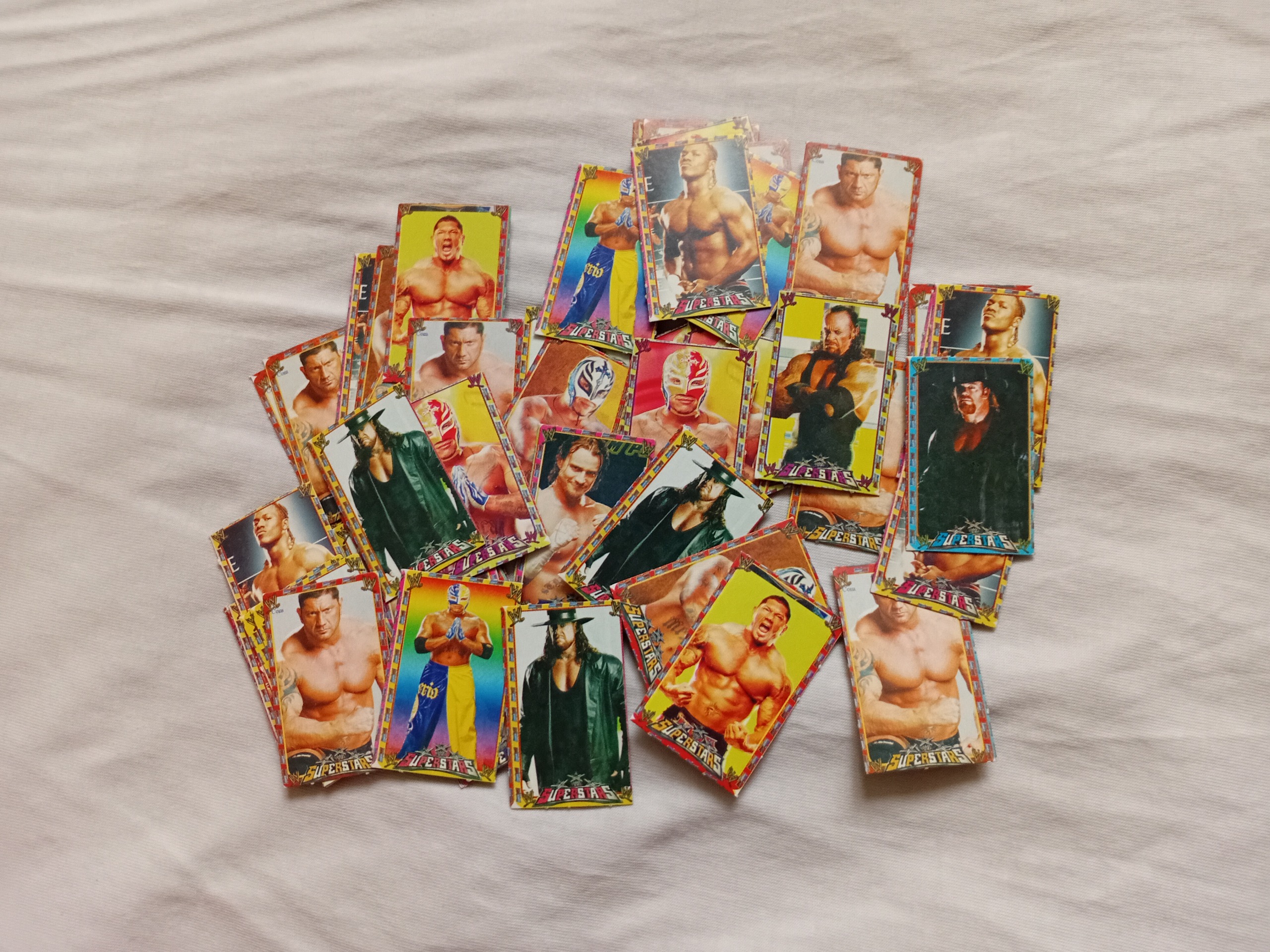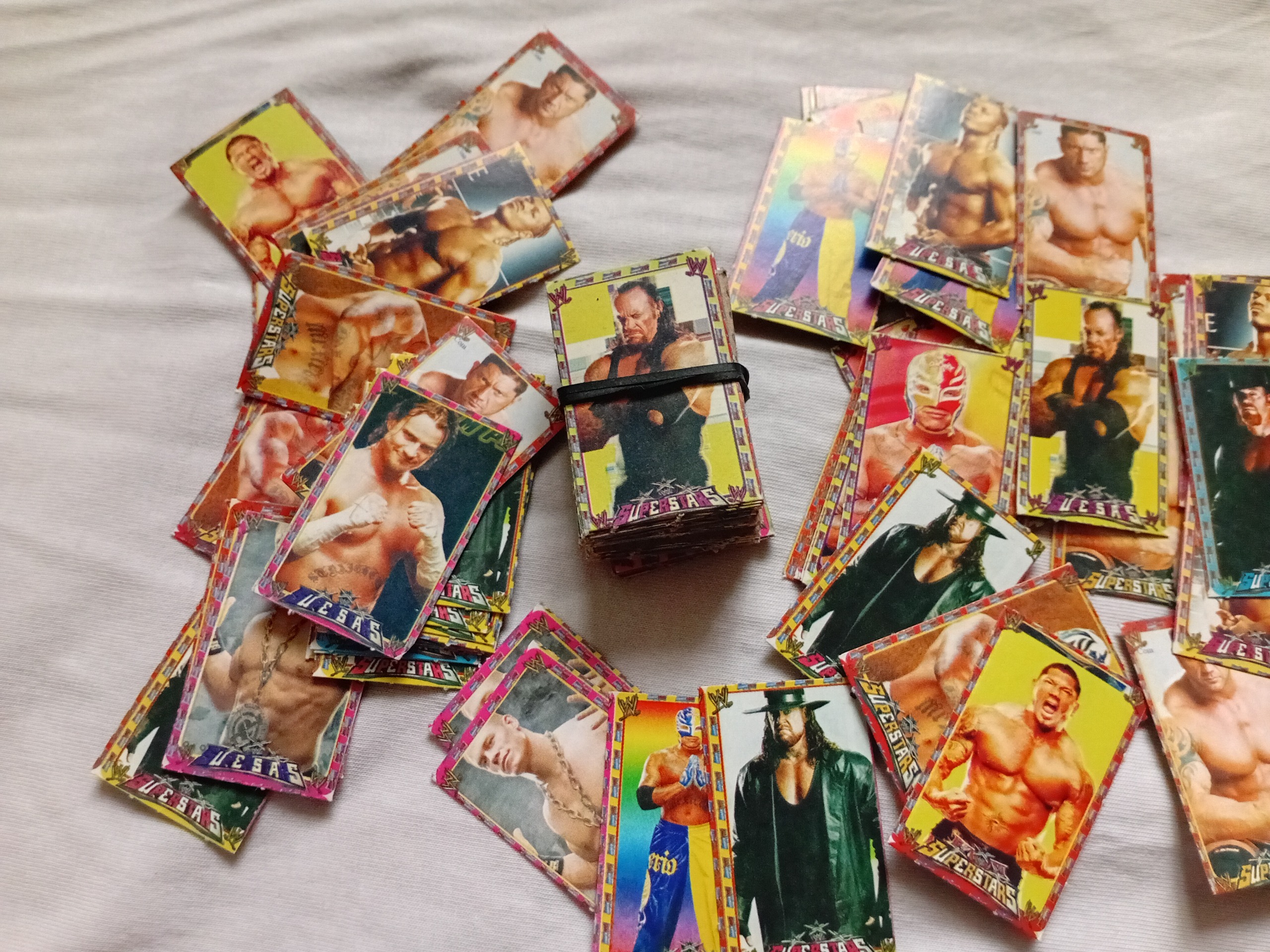 قیمت برای ارسال یک بسته 100 عددی کارت بازی کلکسیونی قدیمی می باشد کارت ها کمیاب مجموعه تصاویر کشتی کج زمان جان سینا و باتیستا و .... دقت کنید داخل کارت ها تکراری هم هست . با اضافه کردن هر عدد به سبد خرید یک بسته 100 عددی کارت بازی ارسال می شود