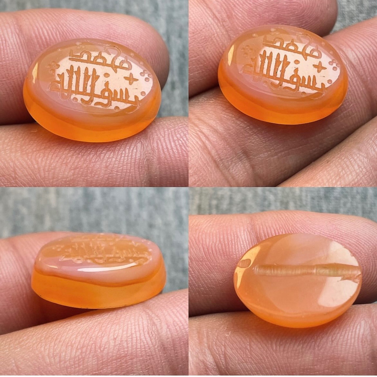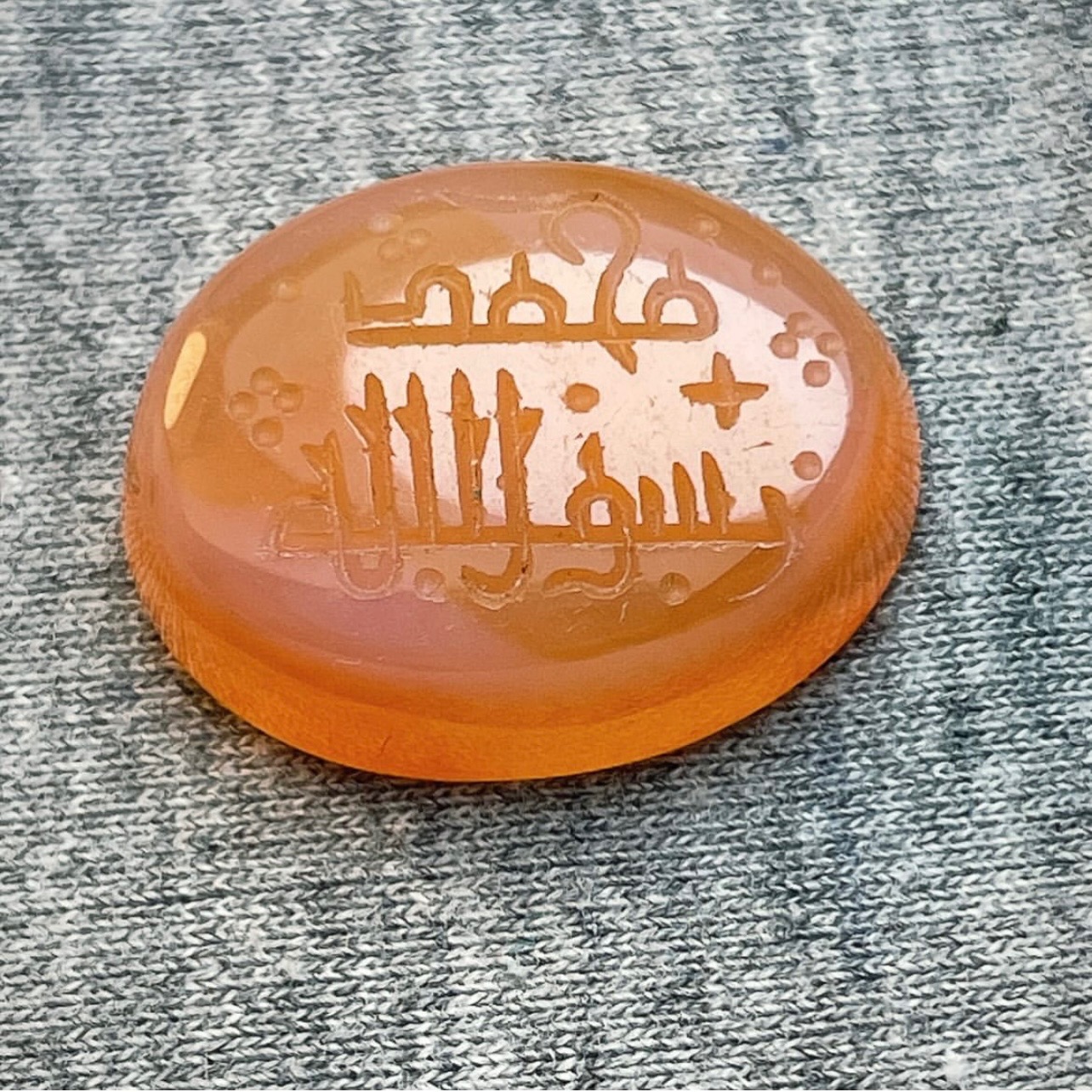 عقیق کهنه بشرط با حکاکی زیبا و دست نویس خط کوفی