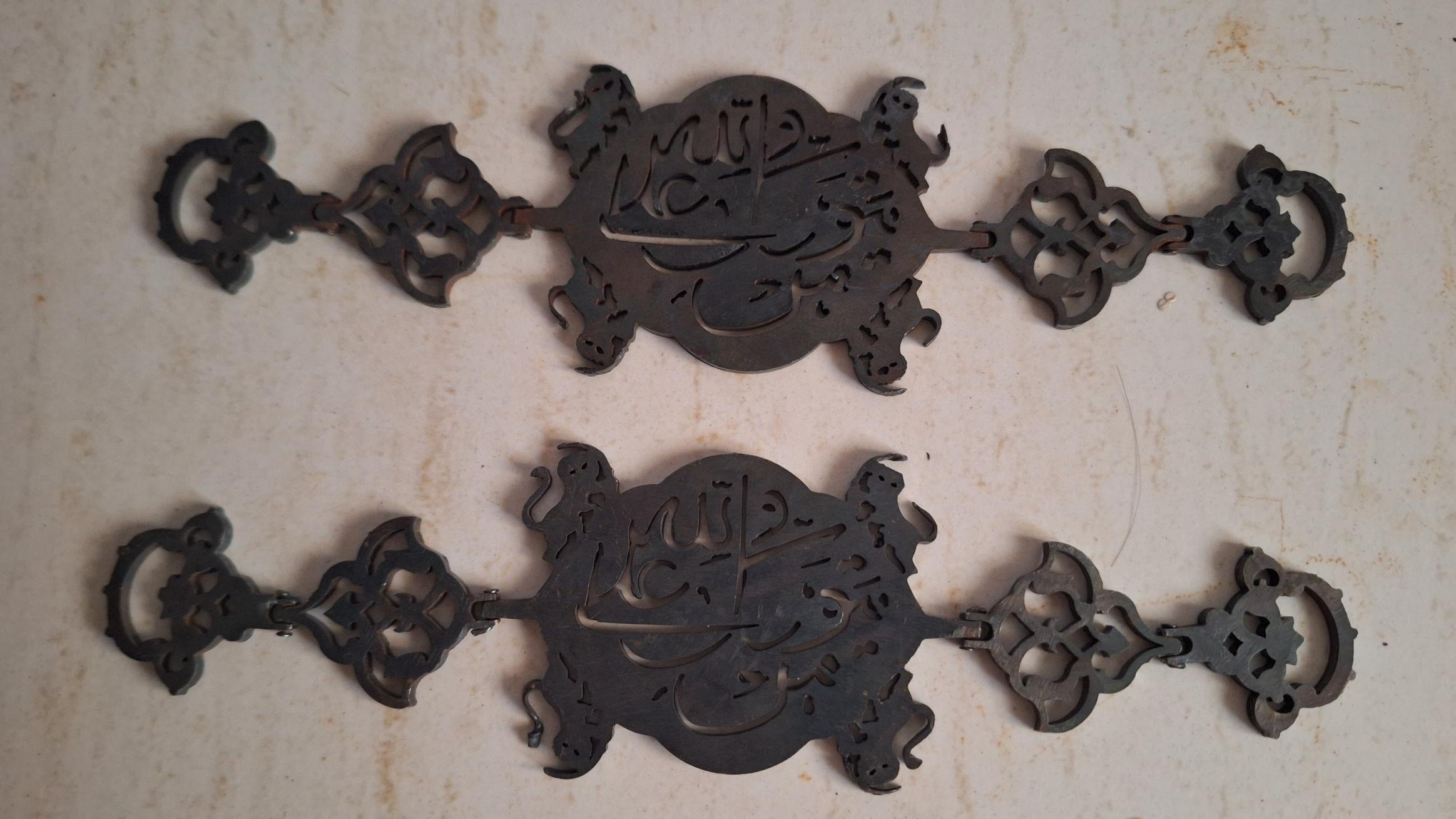 بازوبند فولادی دستساز قدیمی کاردار . درست برابر با تصویر . رنگ آن نیاز به بازسازی دارد و قابل رنگ خوردن به هر رنگ دلخواه می باشد . باز 25 سانتی متر می باشد . ضخیم و سنگین متناسب با سایز . قیمت هر یک عدد در آگهی درج شده است .