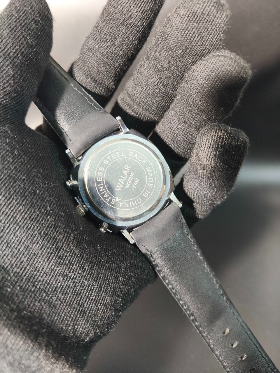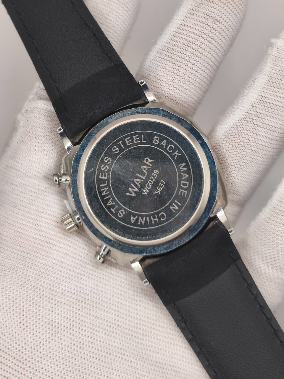 ساعت مچی مردانه والار WALAR با طراحی سه موتوره و کیفیت عالی مجهز به صفحه و عقربه دید در شب بند چرمی دور دوخت فرم صفحه دایره ای موتور تکنولوژی کوارتز قاب دور ساعت استیل رنگ ثابت و قفل سگکی سوزنی کمربندی انتخابی شیک و مقاوم برای استفاده