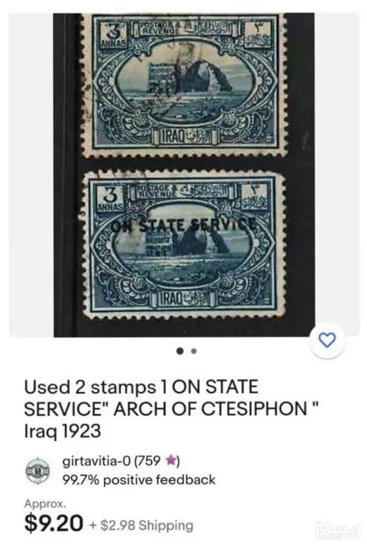 یک جفت از این تمبر در سایت ای بی(تصویر آخر) 9 دلار و 20 سنت و 2 دلار و 98 سنت هم جهت ارسال (جمعا 13 دلار و 18 سنت) قیمت گذاری شده است ولی ما این تمبر ارزشمند و آنتیک را با حد اقل قیمت عرضه کرده ایم.