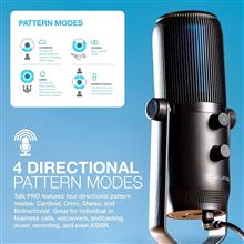 حالتهای الگوی جهت: Talk Pro دارای چهار حالت الگوی جهتدار است: کاردیوئید، همه جهته، استریو و دو جهته. ایدهآل برای تماسهای فردی یا کاری، صداگذاری، میکروفون پادکست، ضبط موسیقی و حتی ASMR. حالتی را انتخاب کنید که متناسب با نیازهای شما باشد.