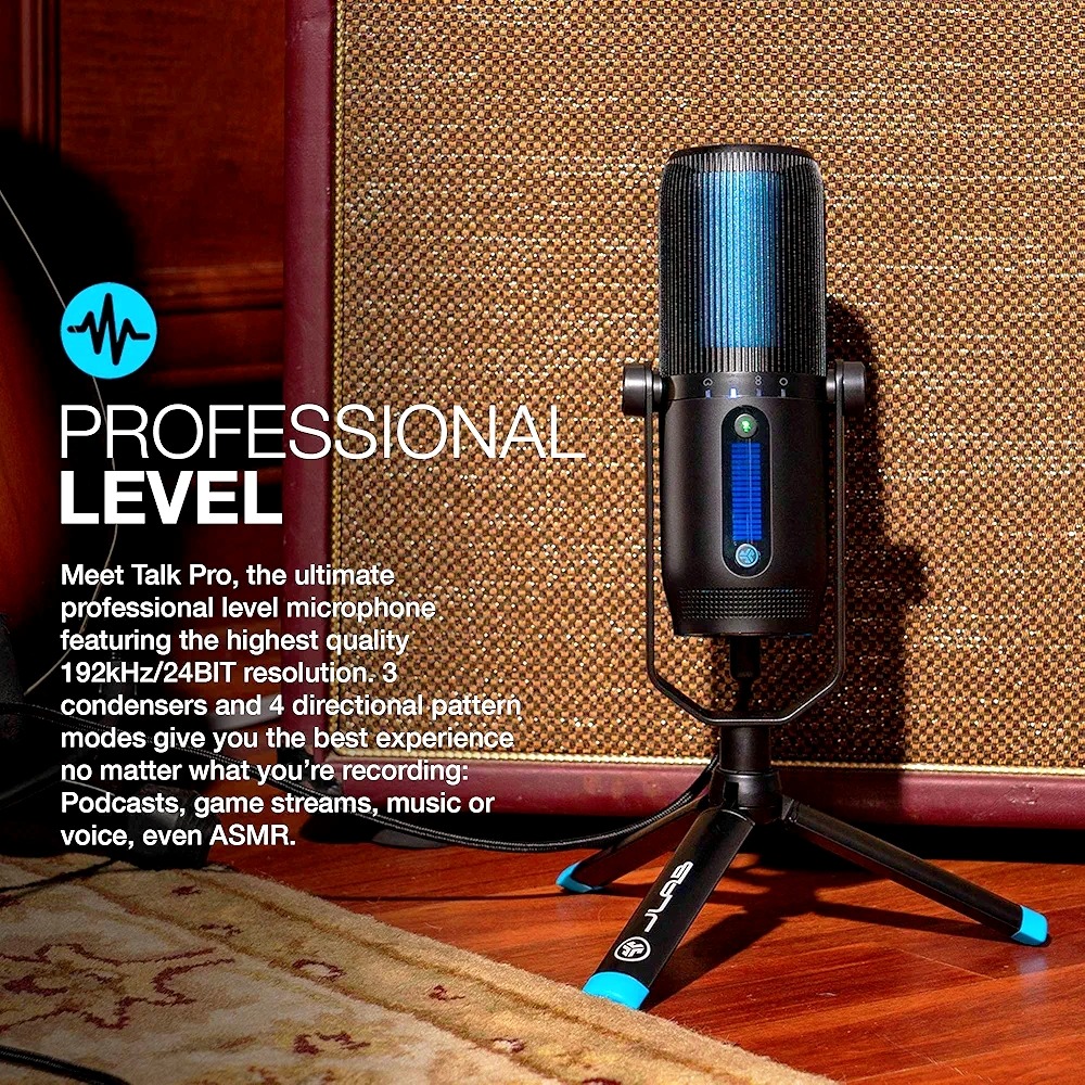 سطح حرفهای: با Talk Pro آشنا شوید، میکروفون حرفهای بینظیر با بالاترین کیفیت وضوح 192 کیلوهرتز/24 بیت در بازی. این میکروفون سه خازن و 4 حالت الگوی جهتدهی را ارائه میدهد تا صرف نظر از آنچه ضبط میکنید، بهترین تجربه را به شما ارائه دهد: پادکست، پخش بازی، موسیقی یا صدا، حتی ASMR. کنترلهای عالی صدا و گین و بیصدا کردن سریع، تجربهای بدون دردسر با صدای واضح را برای هر موقعیتی فراهم میکنند.