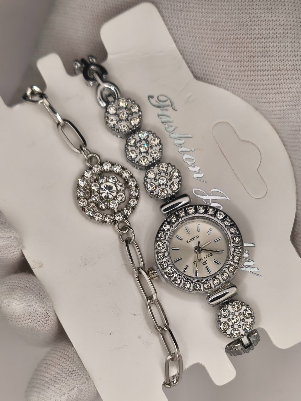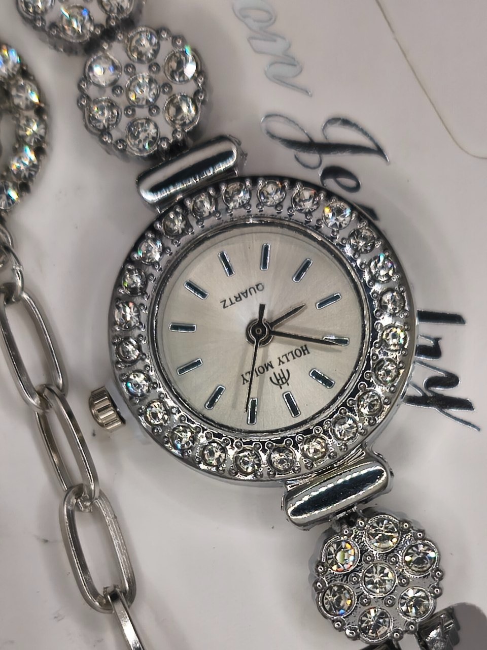 ست ساعت و دستبند دخترانه نگینی برند هولی مولی
