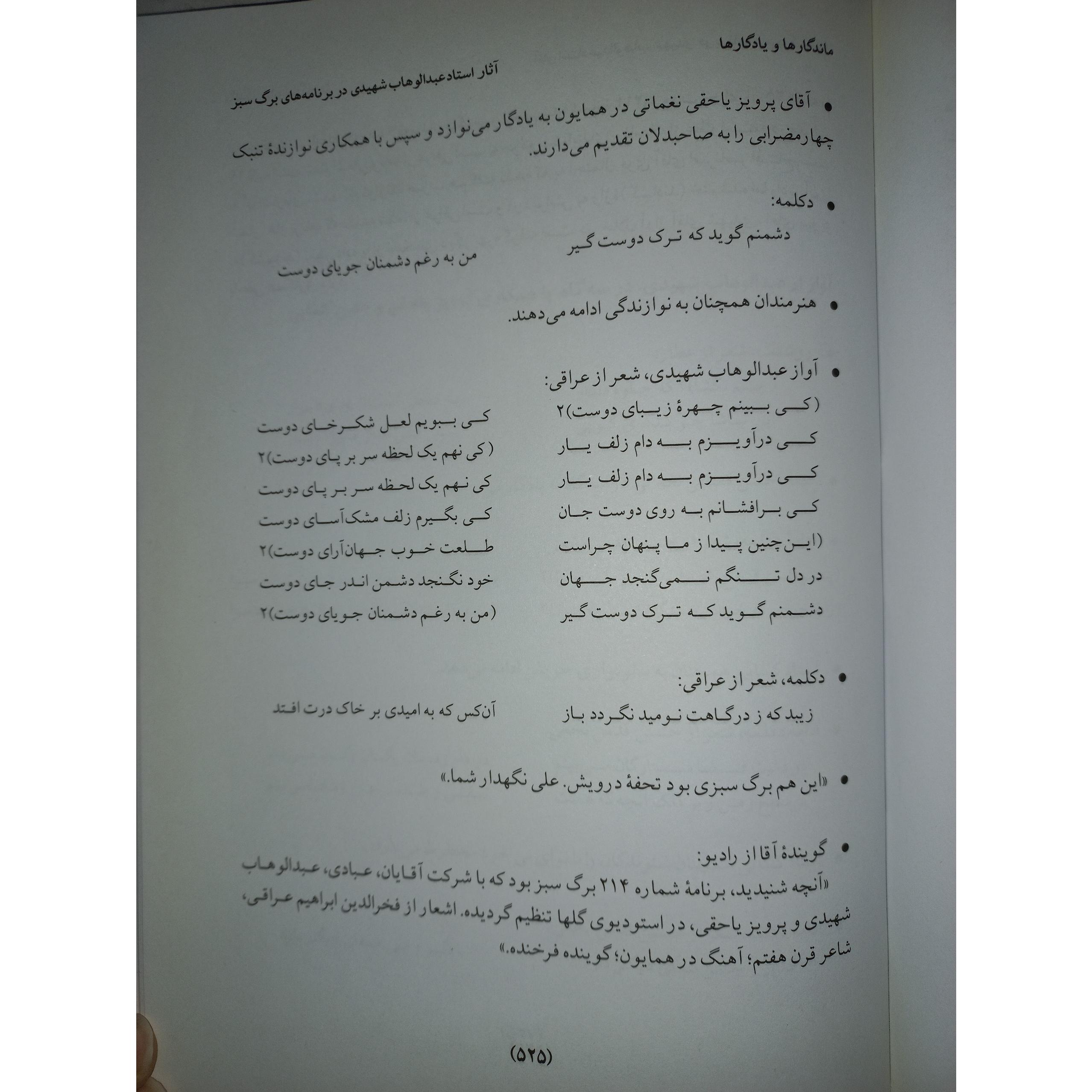 کتاب ماندگارها و یادگارها. عبدالوهاب شهیدی. پیکان