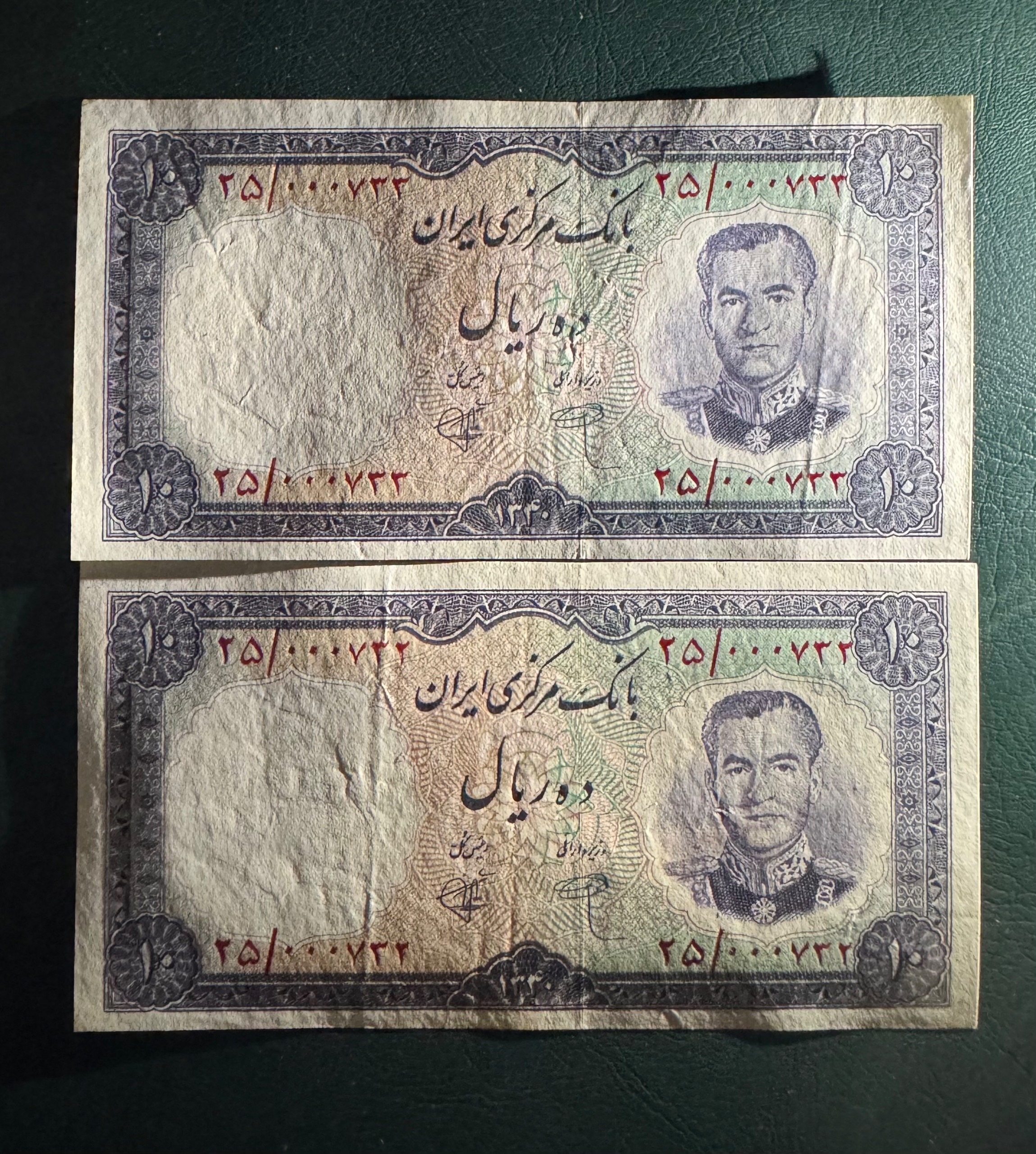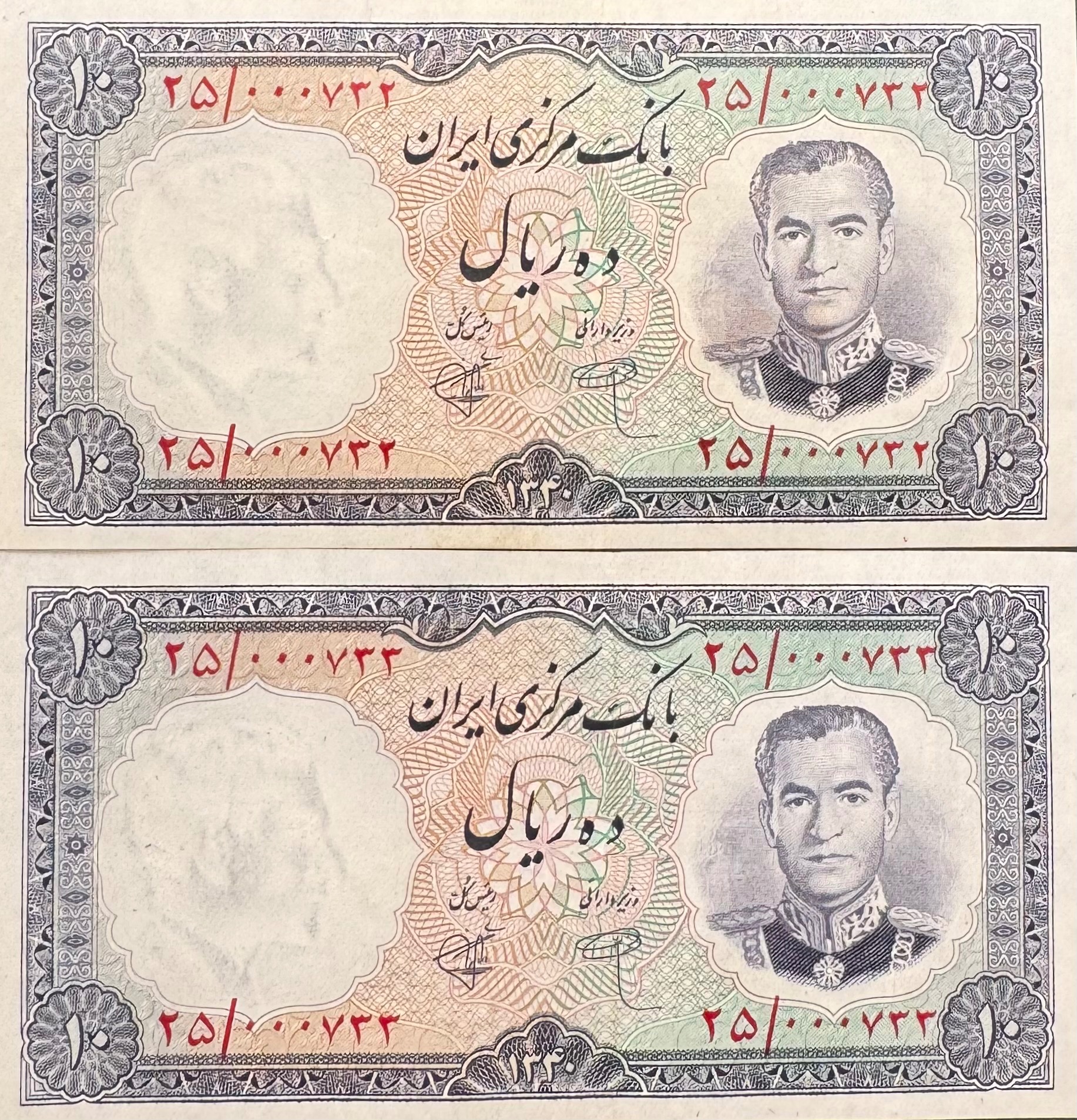 جفت اسکناس 10 ریال 1340 شماره 000732