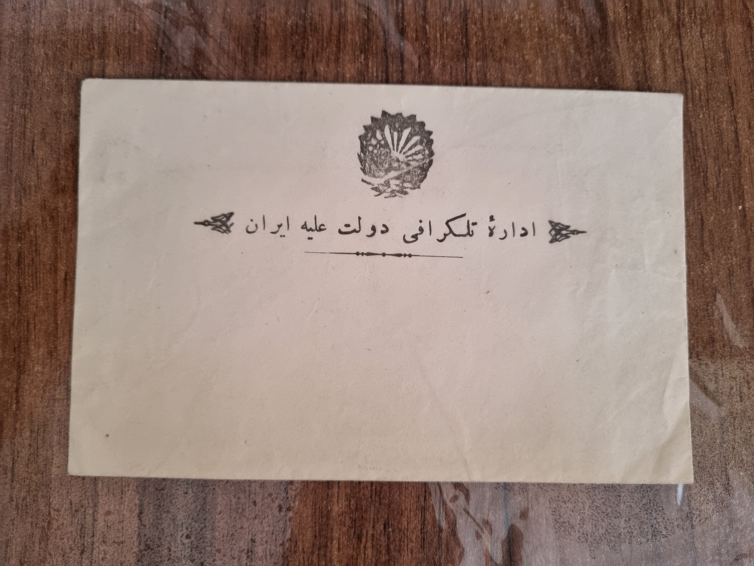 پاکتنامه خالی اداره تلگرافی دولت علیه ایران