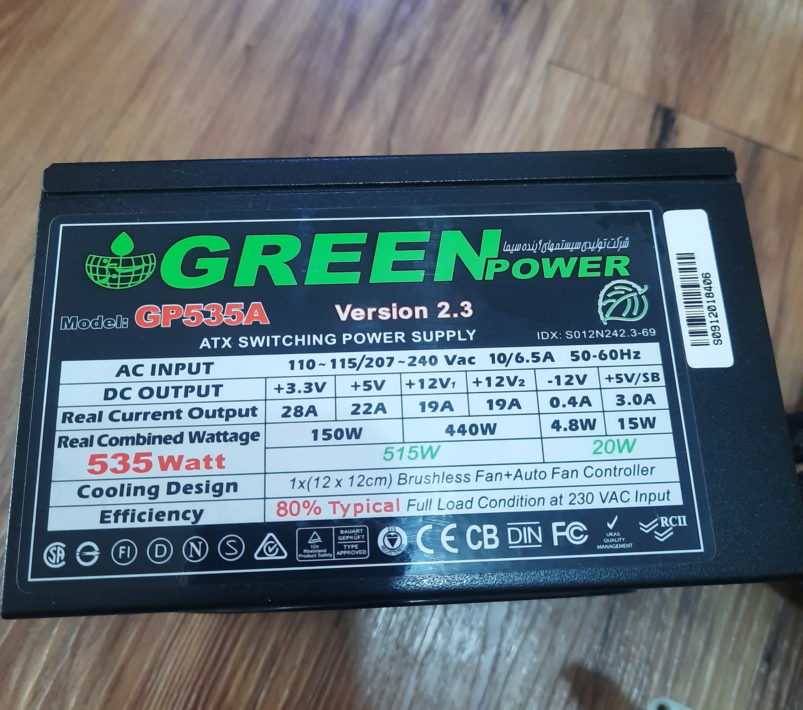 پاور کامپیوتر گرین 535 وات بسیار تمیر