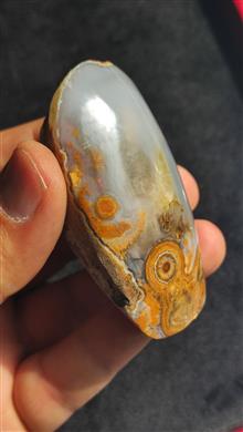 سنگ راف عقیق باباقوری طلایی کاملا طبیعی و معدنی استخراج شده از معادن غنی خراسان جنوبی پولیش شده نمونه بینظیر و فاخر اثر هنری منحصر به فرد از دل طبیعت مناسب کلکسیون یا تراش هدیه ای ارزشمند و ماندگار از دل طبیعت برای خودتون یا عزیزانتون وزن سنگ 112 گرم