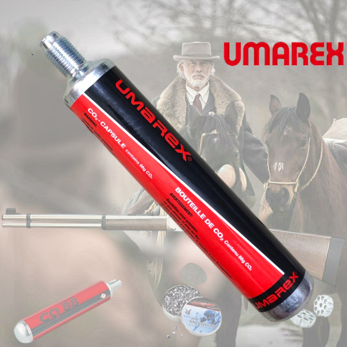 کپسول گاز 88 گرمی دی اکسید کربن برند اومارکس، مناسب جهت انواع تفنگ های ورزشی و شکاری و سایر لوازم بقا و شکار که با کپسول های استاندارد 88 گرمی تغذیه می شوند.