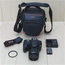 اقلام همراه دوربین : لنز 55-18 + شارژر + باتری + کیف باکیفیت کانن + فیلتر uv + بند گردنی