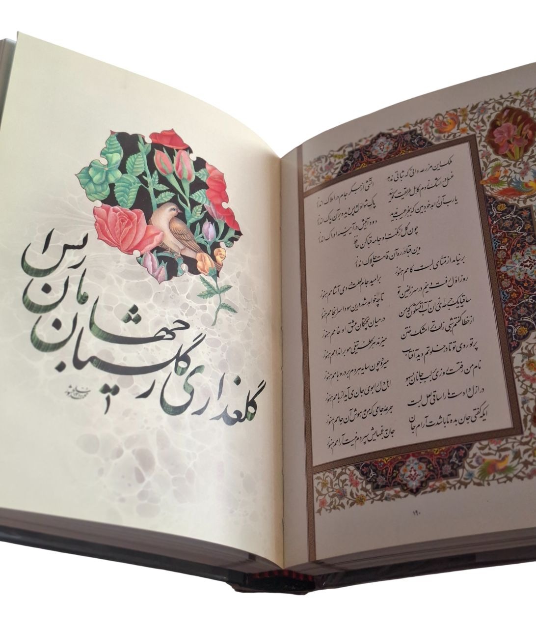 · معرفی مختصر: این اثر، دیوان حافظ را با هنر خوشنویسی استاد سلحشور و تذهیبهای ظریف اردوان اعتمادی در قالبی نفیس و چاپ محدود ارائه میدهد و یک نسخه ارزشمند برای علاقهمندان به شعر و هنرهای سنتی ایران است.