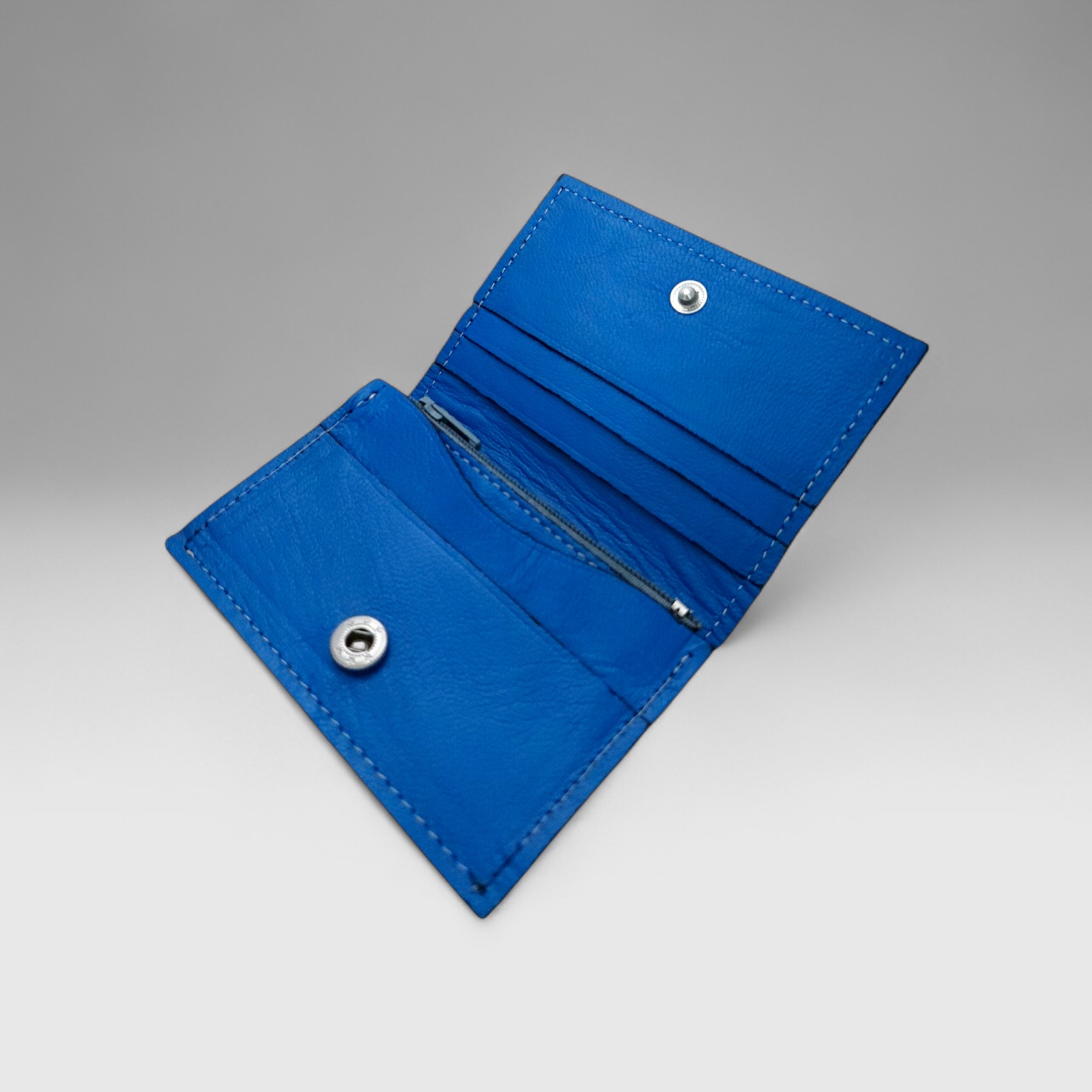 این کیف کارت چرمی آبی با طراحی دقیق و ساختار جمعوجور، نگهداری امن کارتها را به تجربهای لذتبخش تبدیل میکند.