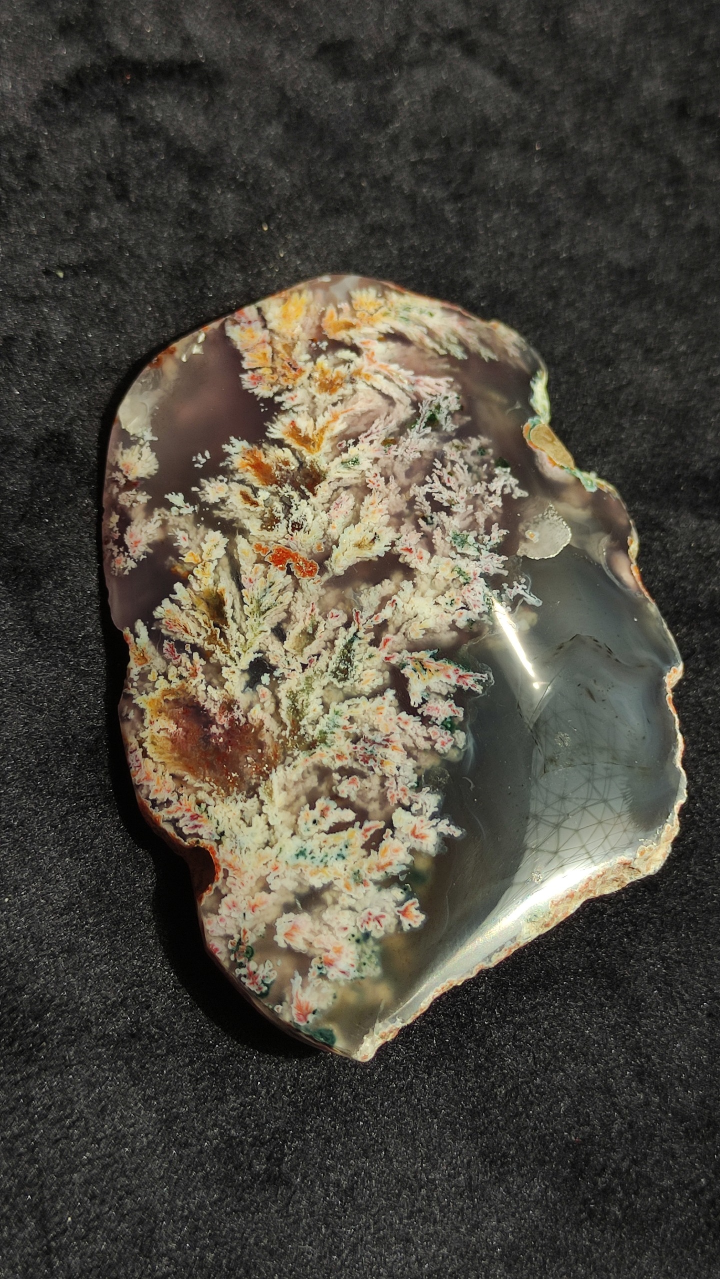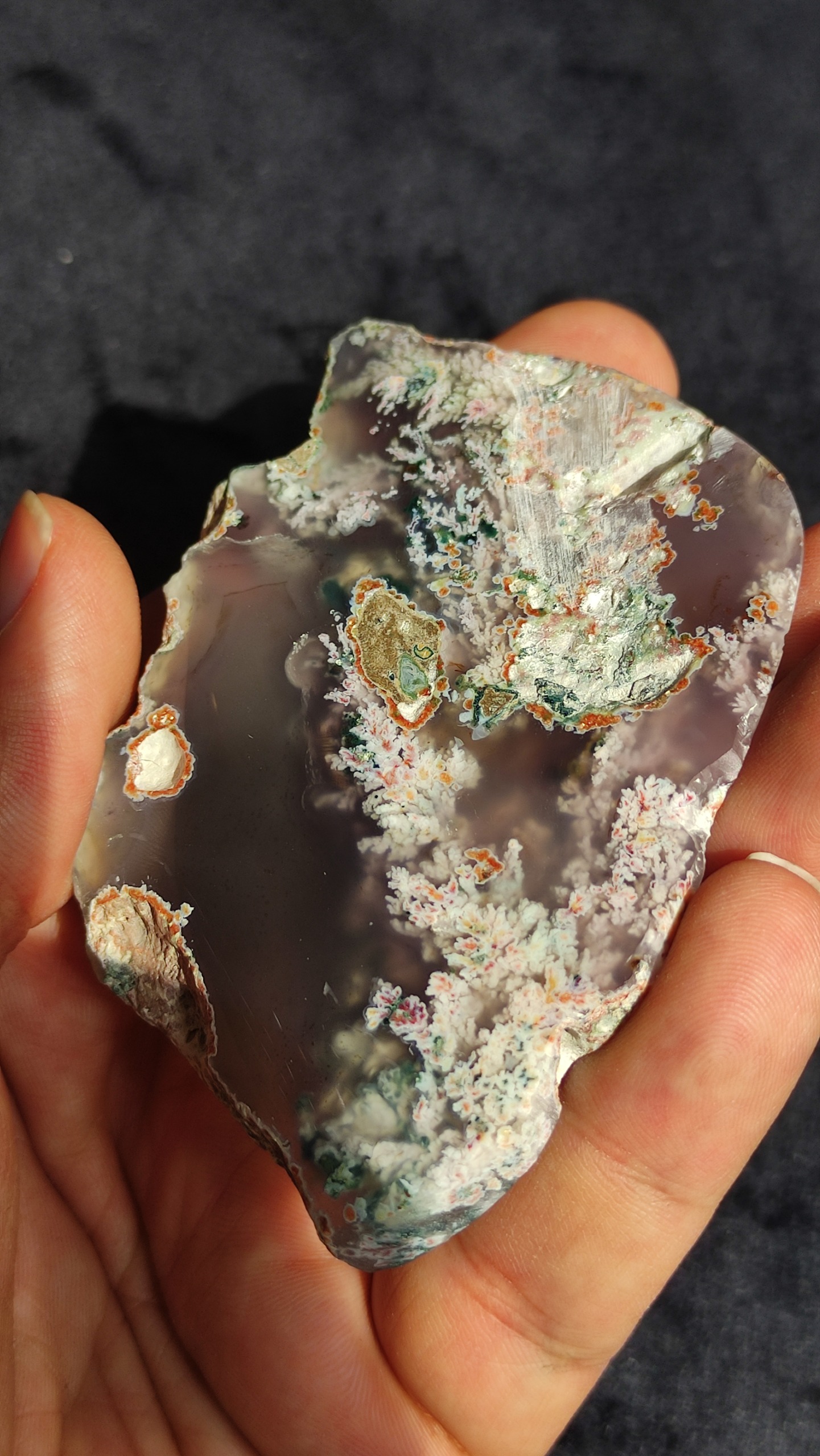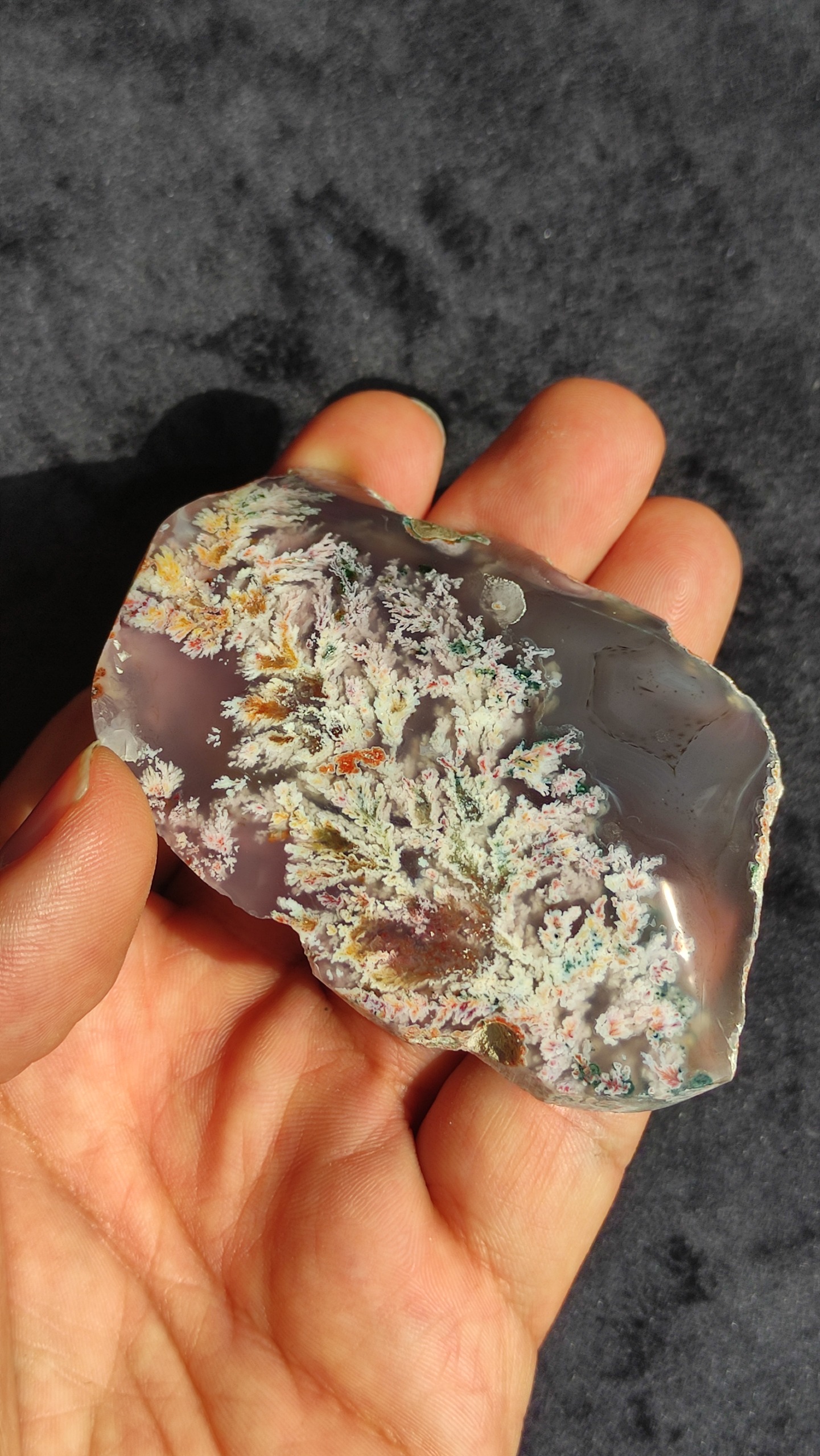 سنگ راف عقیق شجر بهاری هفت رنگ کاملا طبیعی و معدنی استخراج شده از معادن غنی خراسان جنوبی برش خورده و دو بر پولیش نمونه ای کم نظیر و درجه یک اثری هنری منحصر به فرد از دل طبیعت مناسب کلکسیون یا تراش هدیه ای ارزشمند و ماندگار از دل طبیعت برای خودتون یا عزیزانتون وزن سنگ 87 گرم