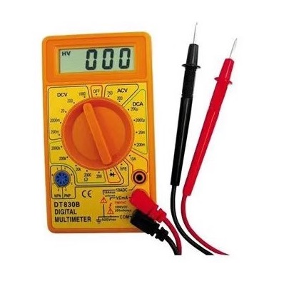 مولتی متر دیجیتال DT830B از مولتی مترهای کوچک و قابل حمل است که با ولتاژ 9 ولت و از طریق باتری 6F22 تغذیه می شود و می تواند اندازه گیری ولتاژ AC و DC، جریان DC، تست دیود و ترانزیستور، و اندازه گیری مقاومت را با حداکثر عدد 1999 انجام دهد و بر روی صفحه نمایش LCD کوچک نمایش دهد.این مولتی متر از گروه مولتی مترهای دیجیتالی مقرون به صرفه به حساب می آید و برای افراد مبتدی گزینه ی مناسبی است.