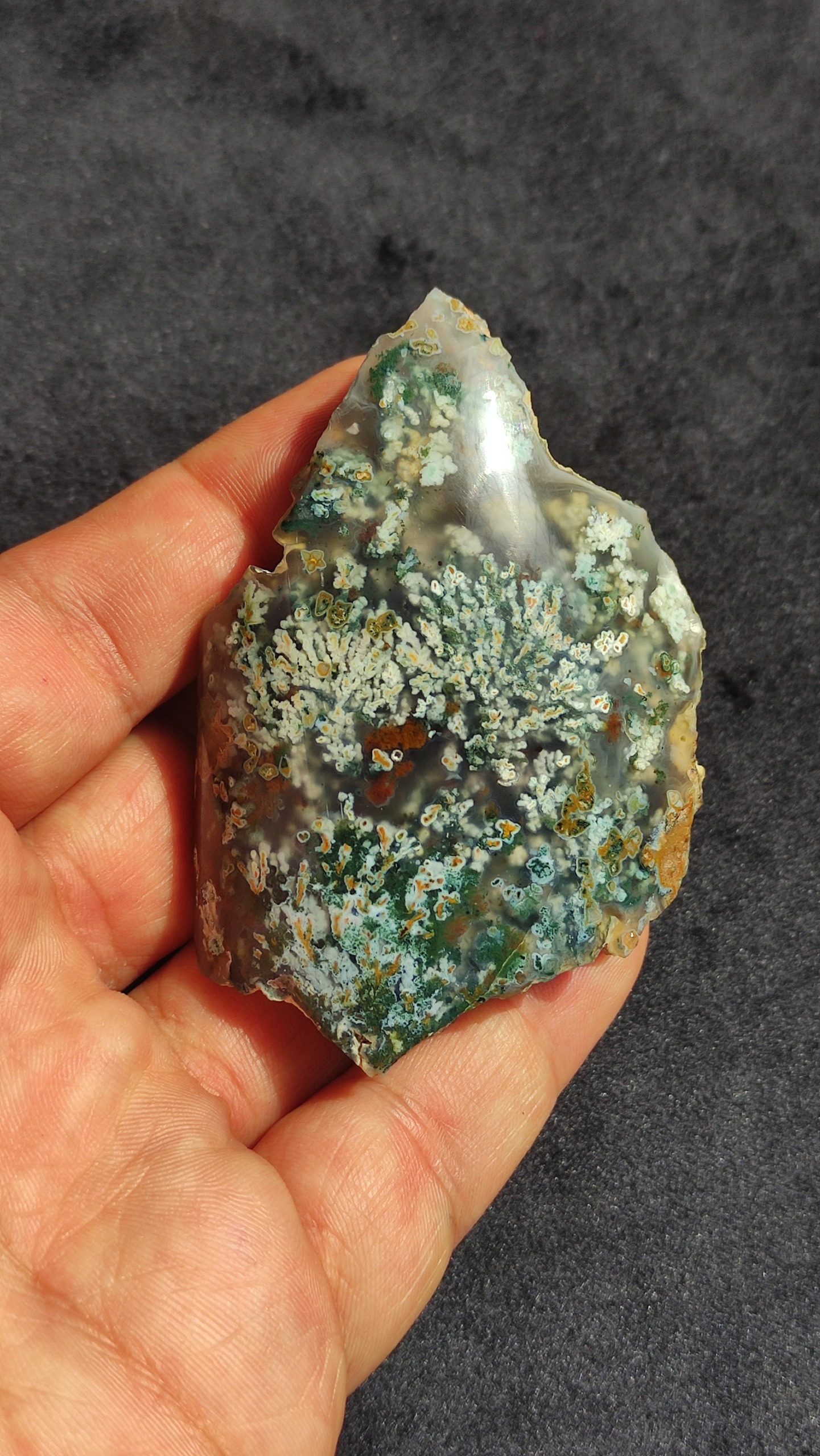سنگ راف عقیق شجر بهاری هفت رنگ کاملا طبیعی و معدنی استخراج شده از معادن غنی خراسان جنوبی پولیش شده نمونه ای کمیاب و منحصر به فرد از دل طبیعت مناسب کلکسیون یا تراش هدیه ای ارزشمند و ماندگار از دل طبیعت برای خودتون یا عزیزانتون وزن سنگ 78 گرم