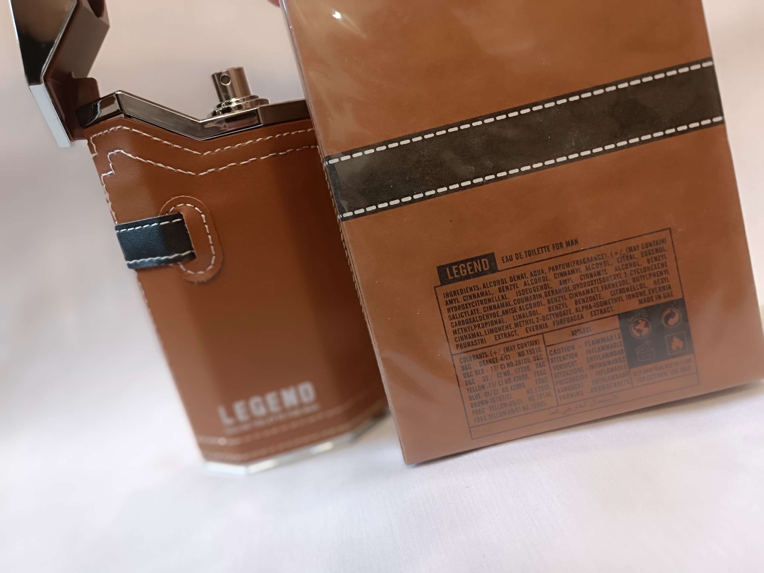 بقیهی عطرهای مردانه و هم قیمتش قابل اعتناتر است. طراحی شیشه با توجه به پوشش چرمی و قهوهای رنگی که دور آن را احاطه کرده، بسیار زیبا به نظر میرسد. نام Legend در پایین شیشه با خط سفید قابل مشاهده است. در بطری و باز و بسته کردن آن حس خوبی در شما ایجاد میکند.