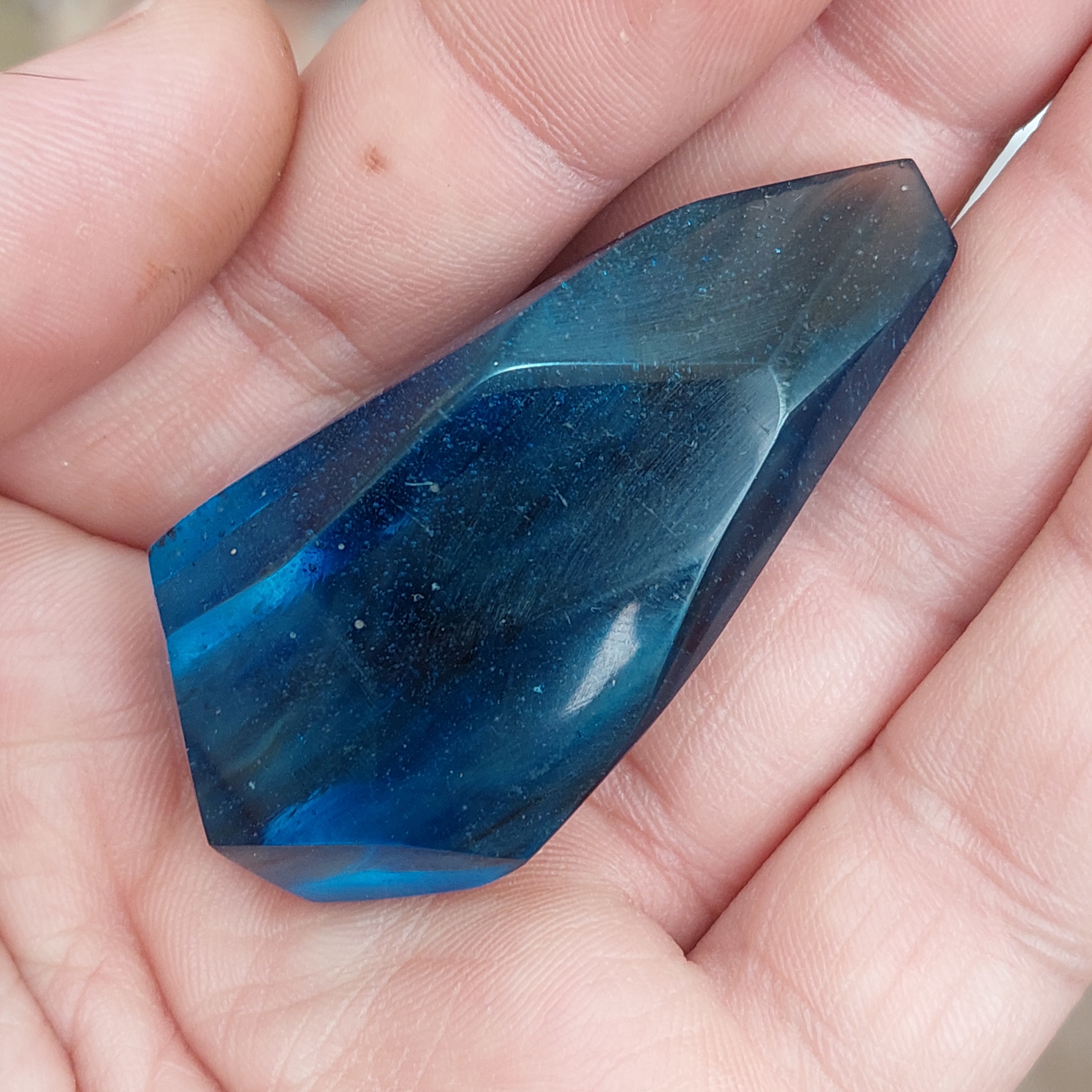 سنگ کلکسیونی ابسیدین آبی تراش زاویه دار  فوق العاده خاص و زیبا تراش دست به وزن 200 قیراط