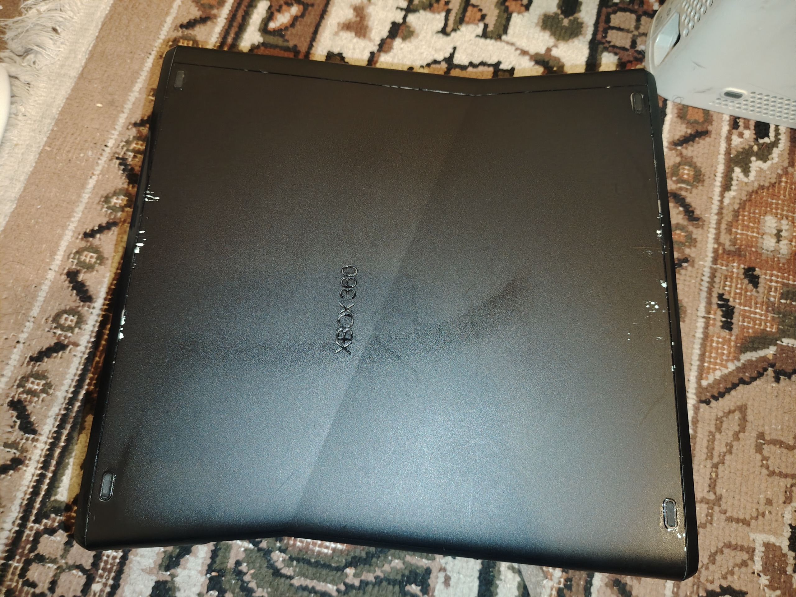 کنسول ایکس باکس 360 اسلیم کاملا تمیز و سالم تک دسته اصلی به همراه متعلقات داخل کارتن متاسفانه به علت قدمت بالا کارتن نداره کنسول در سلامت کامل هم از بابت فنی و ظاهری کنسول در حال حاضر جیتگ هست با هارد 500 گیگ هلت 99 درصد با 44 عنوان بازی تاپ روش نصب شده درایو کنسول رو چک نکردم شمو خراب در نظر بگیرید که حرفی توش نباشه دسته به تازگی سرویس رفته و در سلامت کامل میباشد به همراه اقلام از جمله کابل hdmi کابل برق اداپتور که دوتا پیچ نداره یک مقدار قاب لقه ولی در سلامت کامل هست و یک کیف