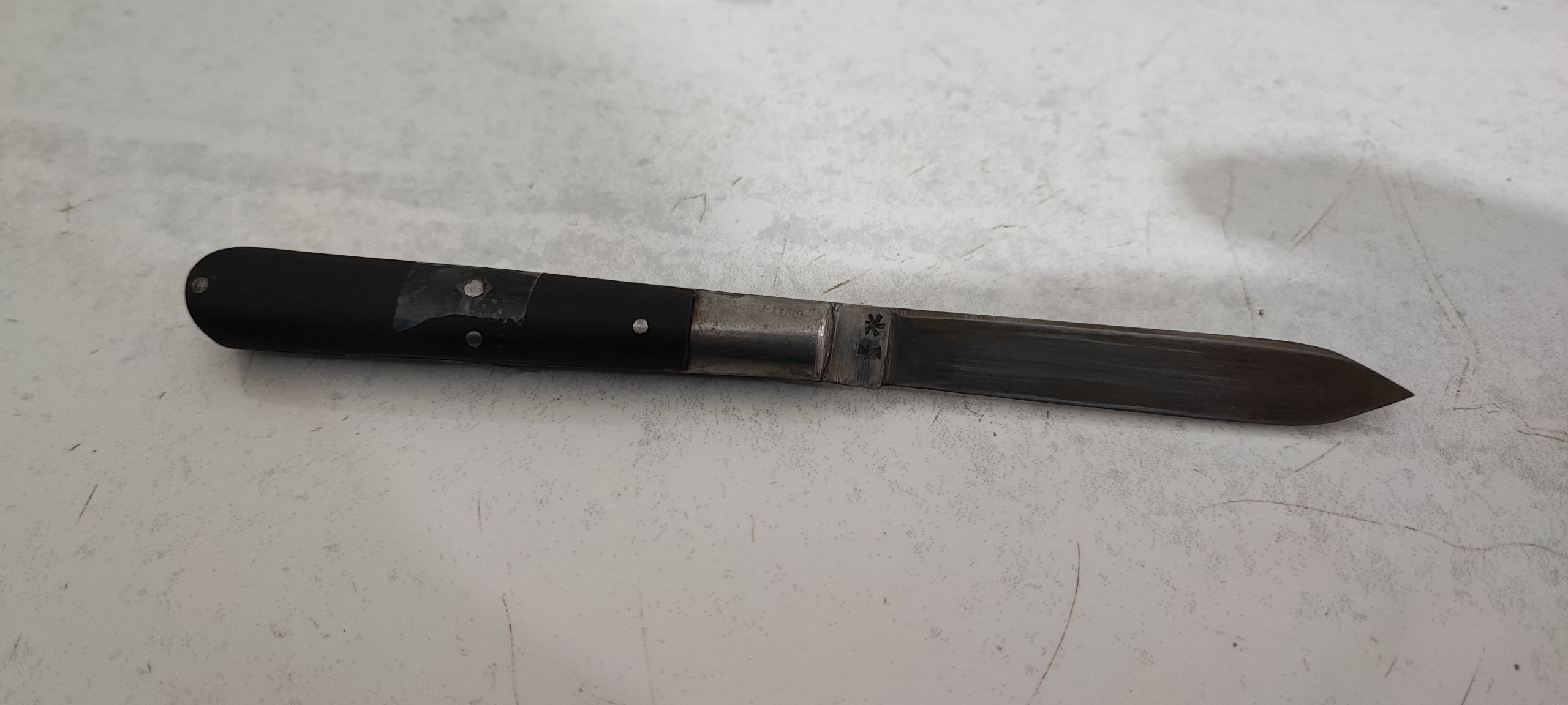 16/5 سانت طول، تیغ فولادی و دسته شاخ، بکر و بدون ایراد، نفیس و نایاب و کلکسیونی