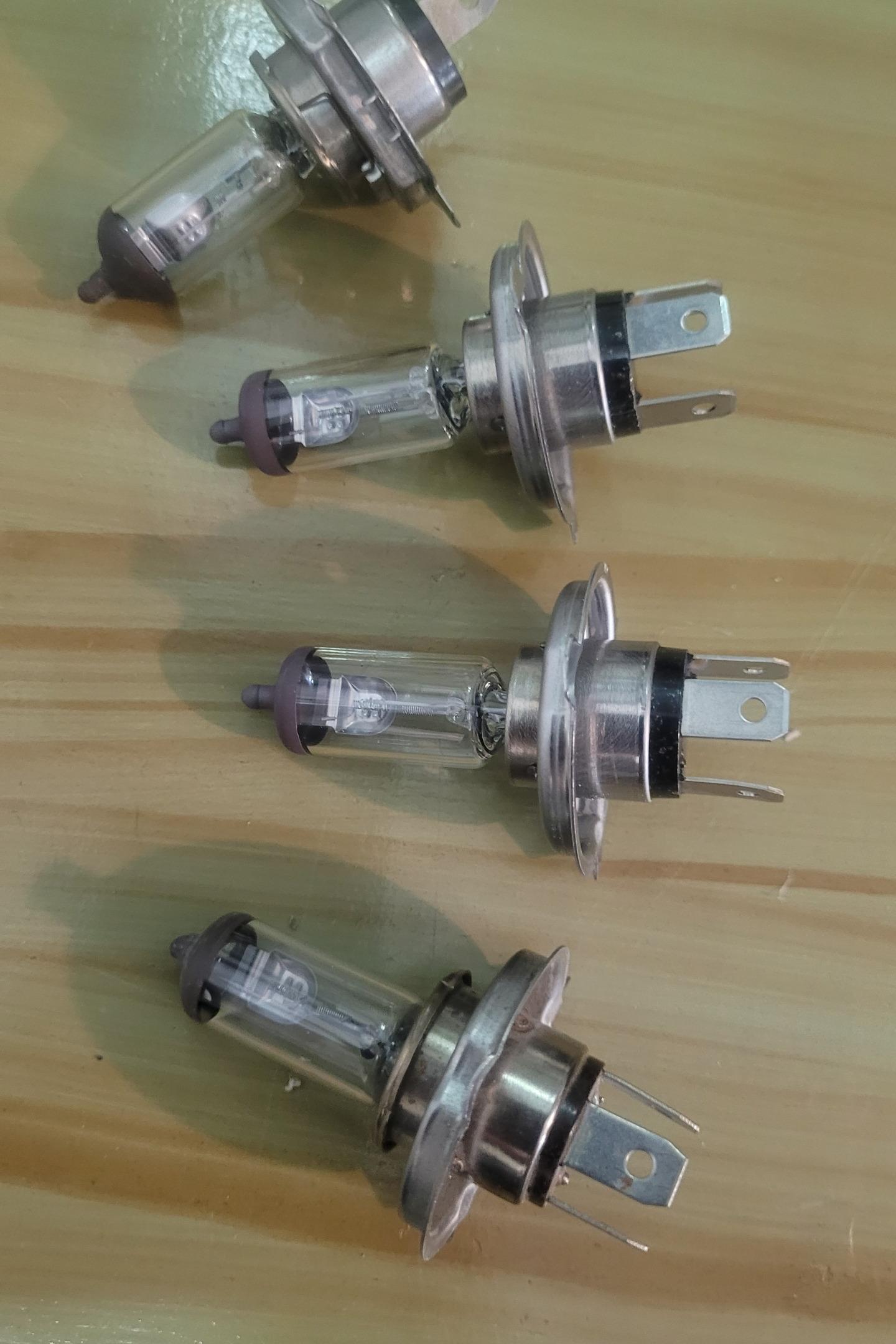 4 عدد لامپ جلو خودرو (H4)/  لامپها نور بالا و نور پایین بوده که هر 4 لامپ یکی از کنتاکتها یا نور بالا یا نور پایین از کار افتاده و فقط با یک نور کار میکند