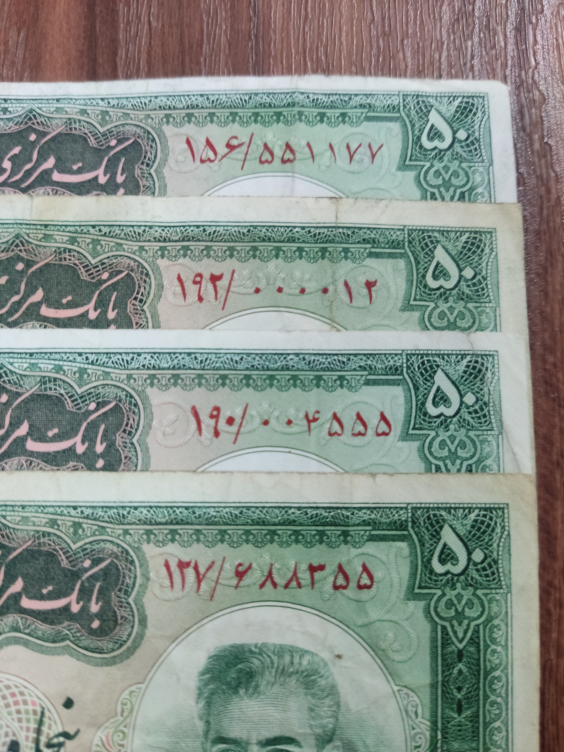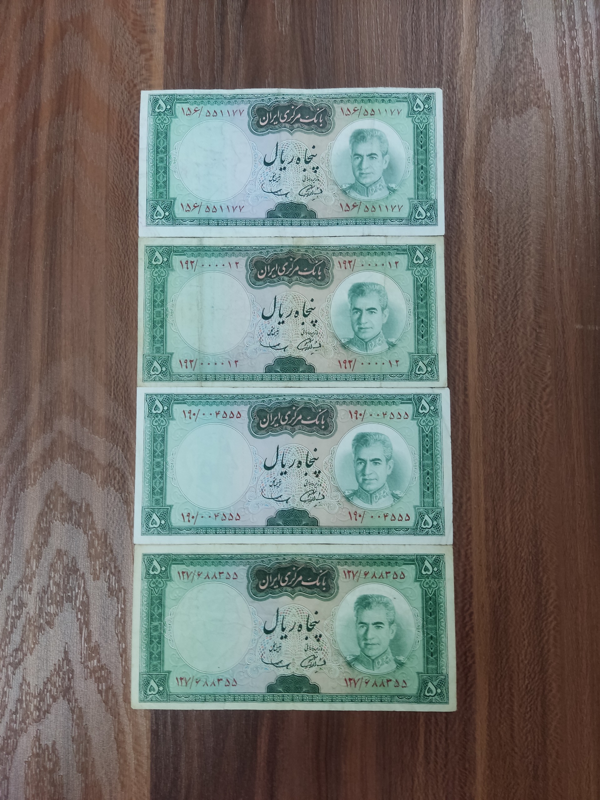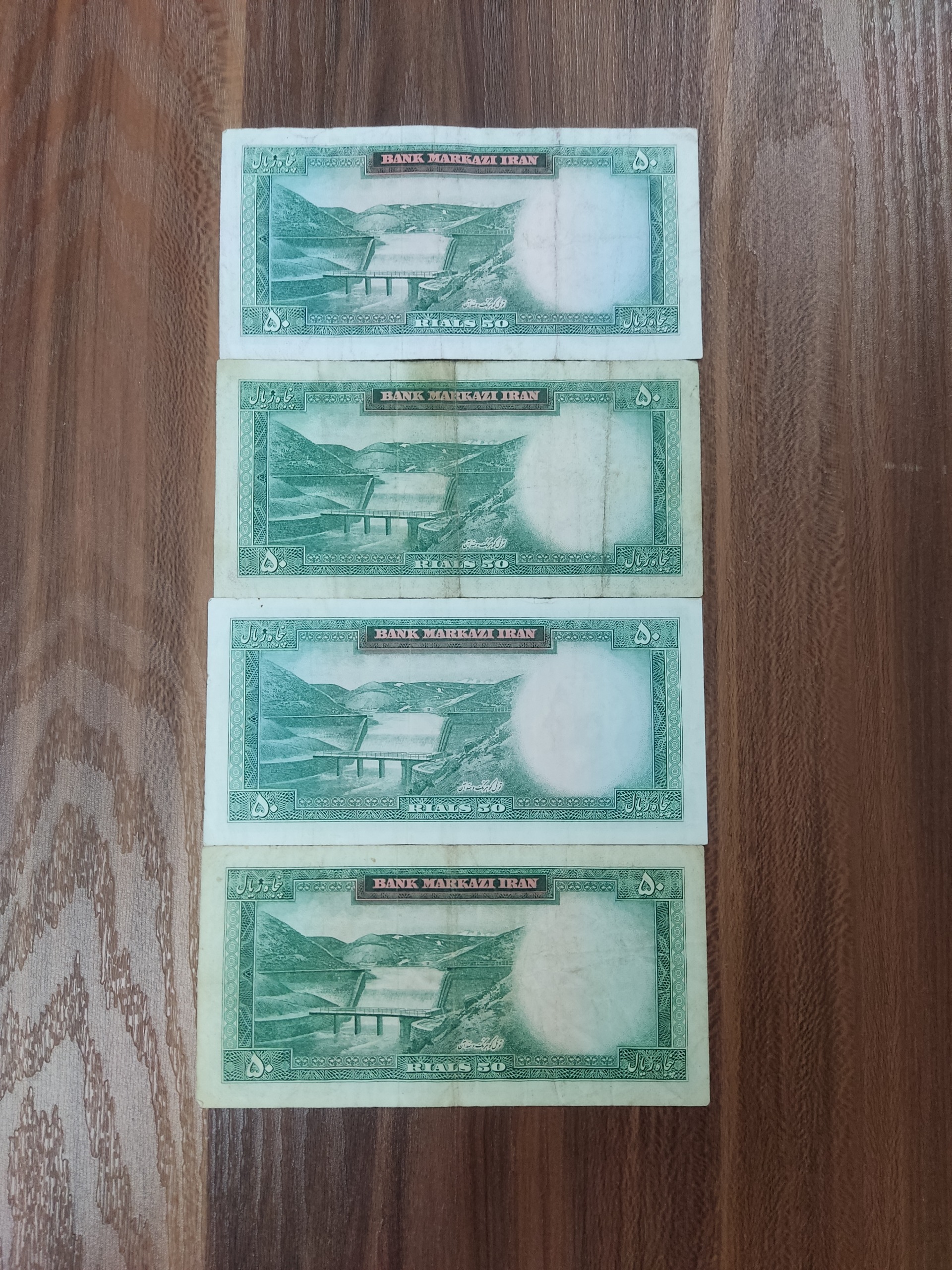 4 برگ اسکناس 50 ریالی پهلوی شماره زیبا و خاص