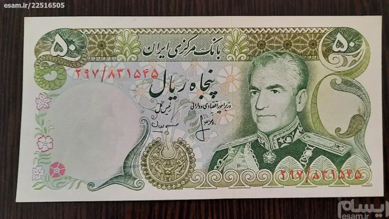 اسکناس بانکی ارزشمند 50 ریالی محمدرضاشاه