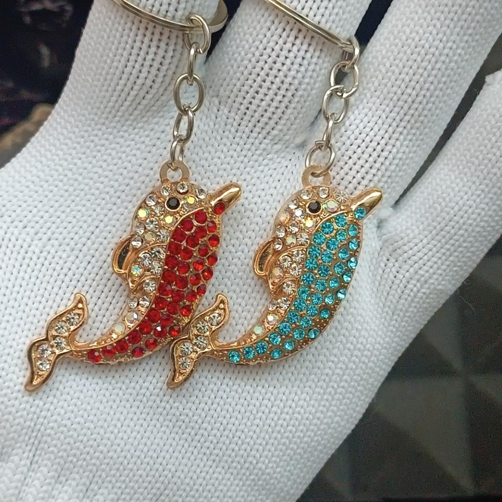 جاکلیدی دلفین نگین دار رنگ قرمز