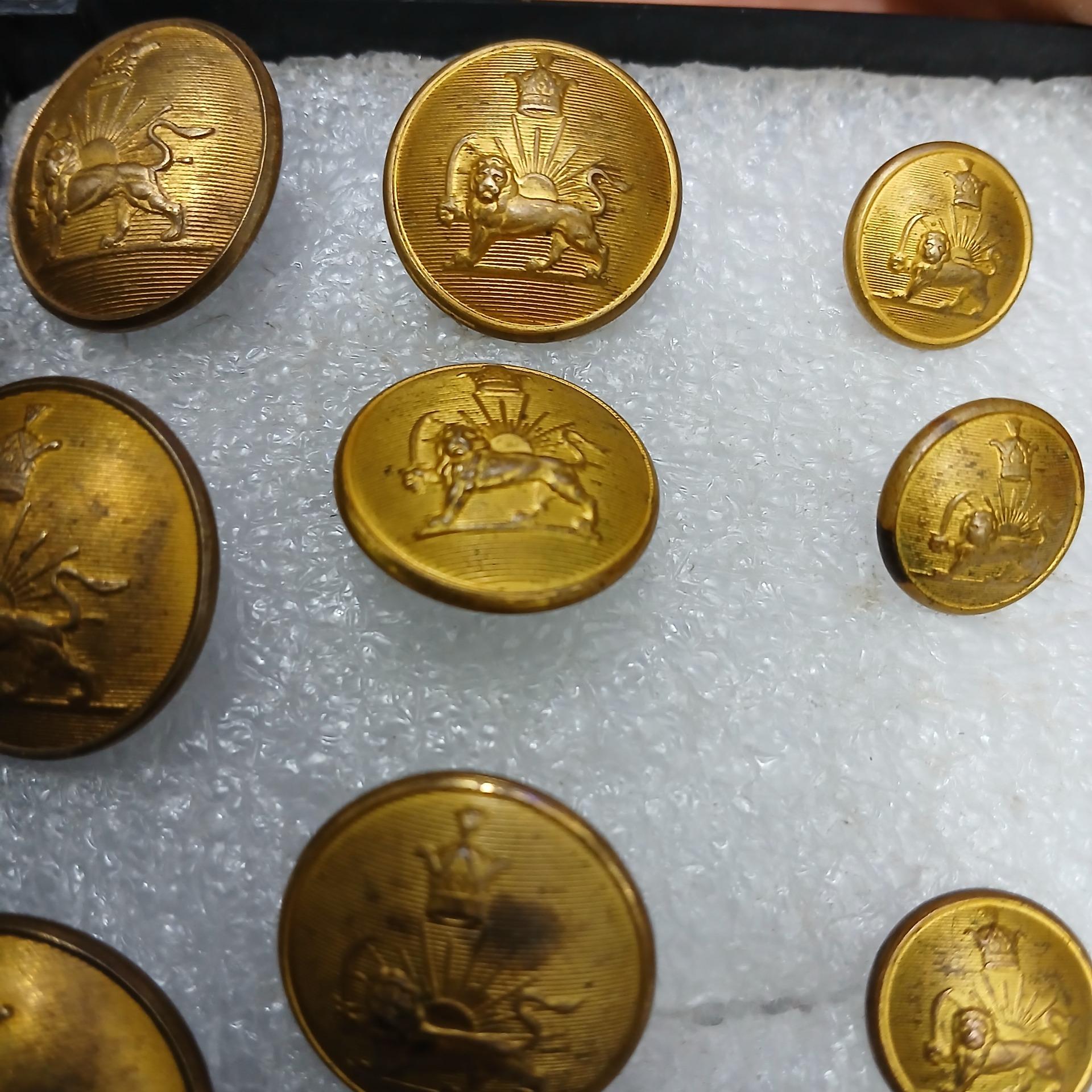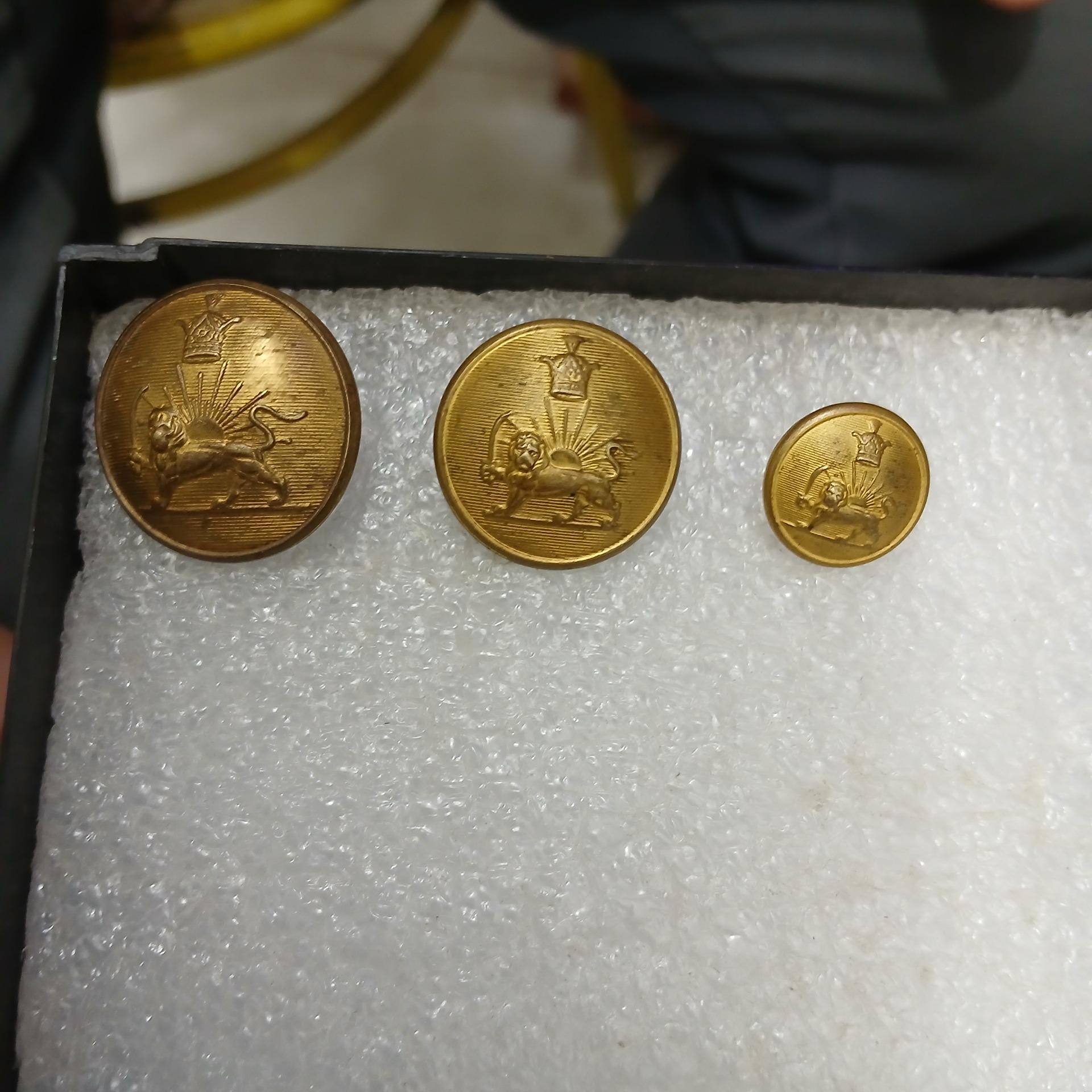 تعداد هفده عدد دکمه خارجی برنج  ،مربوط به پهلوی اول ،در سه سایز مختلف ،اگر در خرید ابهام و تردید دارید از خرید خودداری نمایید ،
