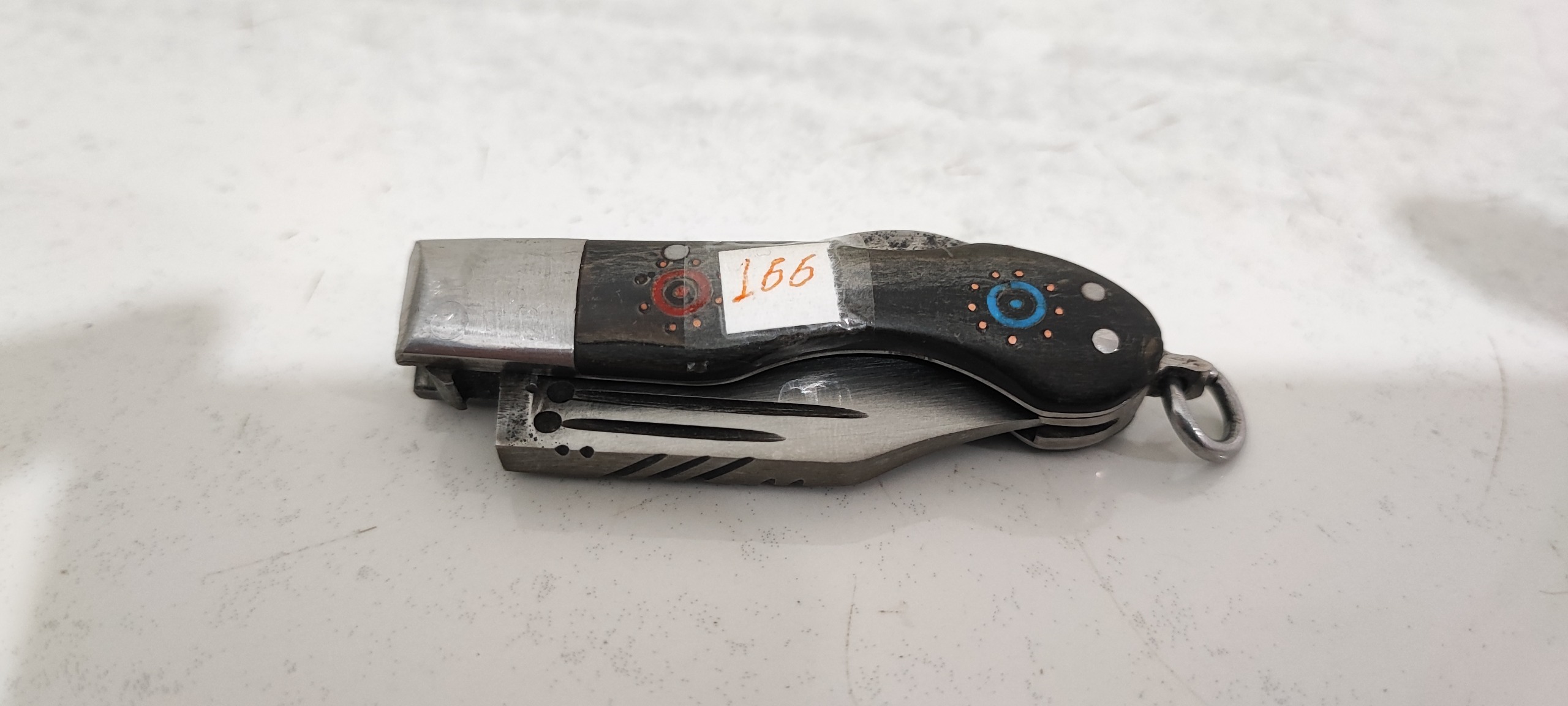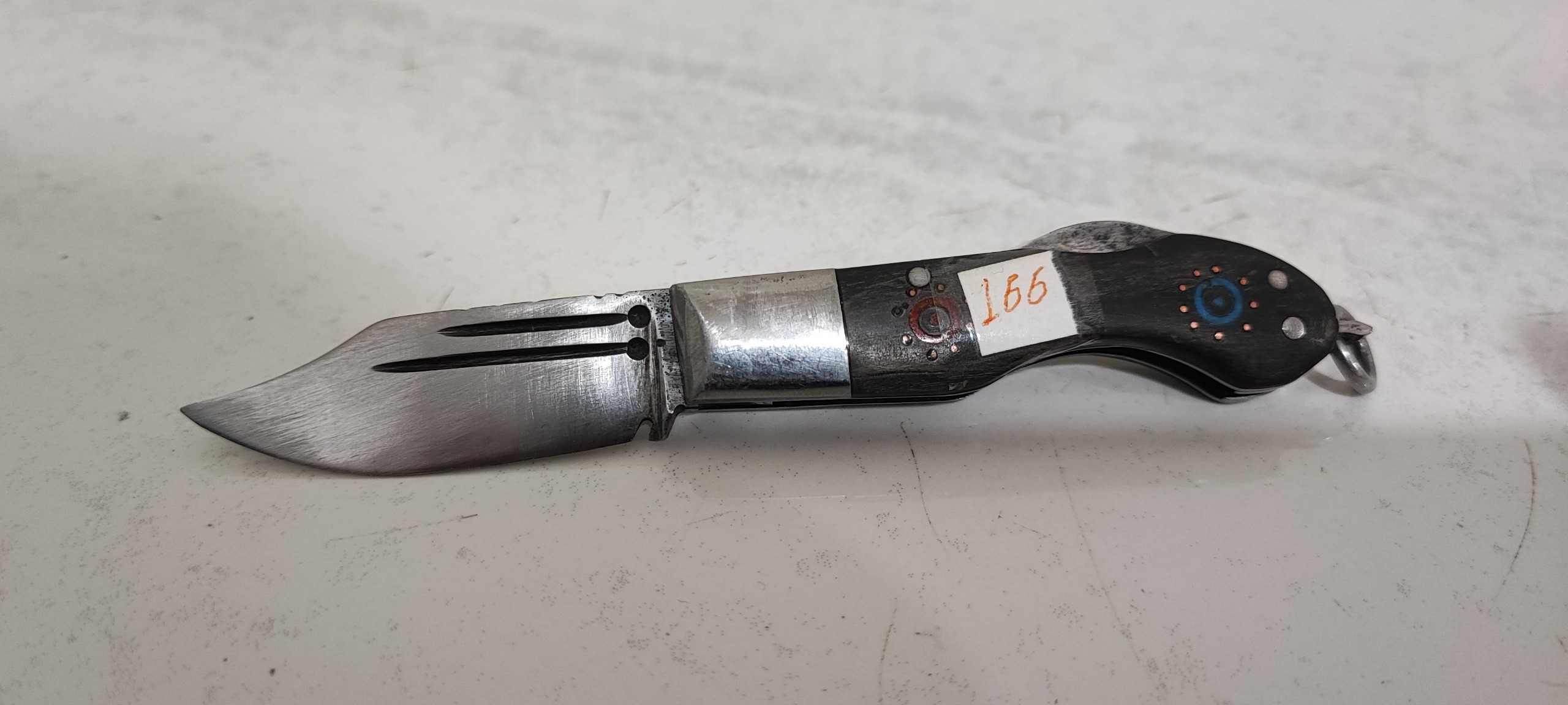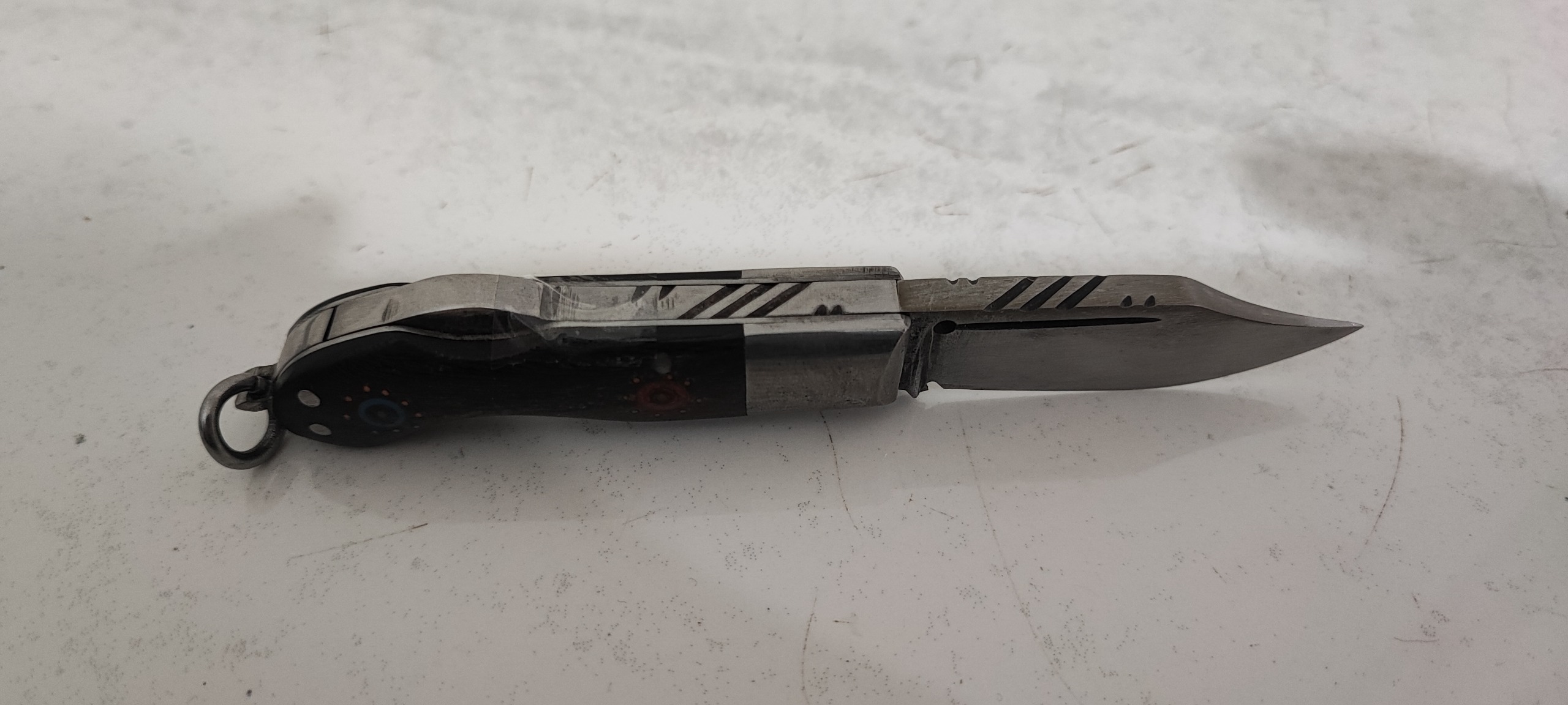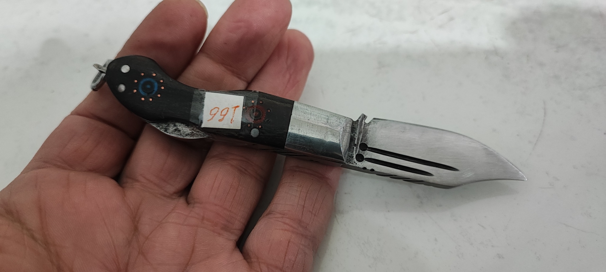 13/5 سانت طول، تیغ از فنر و دسته شاخ، محکم و بکر و بدون ایراد