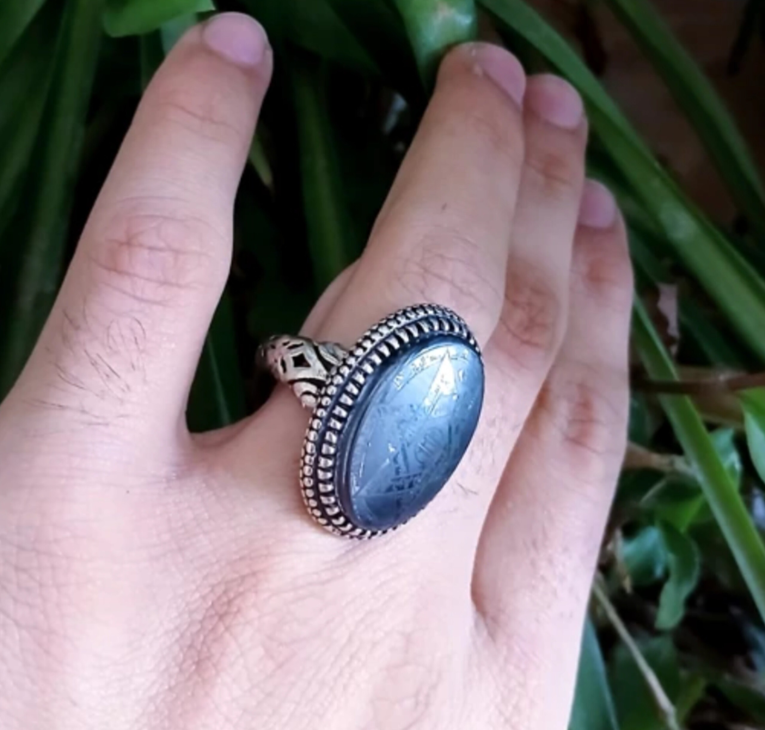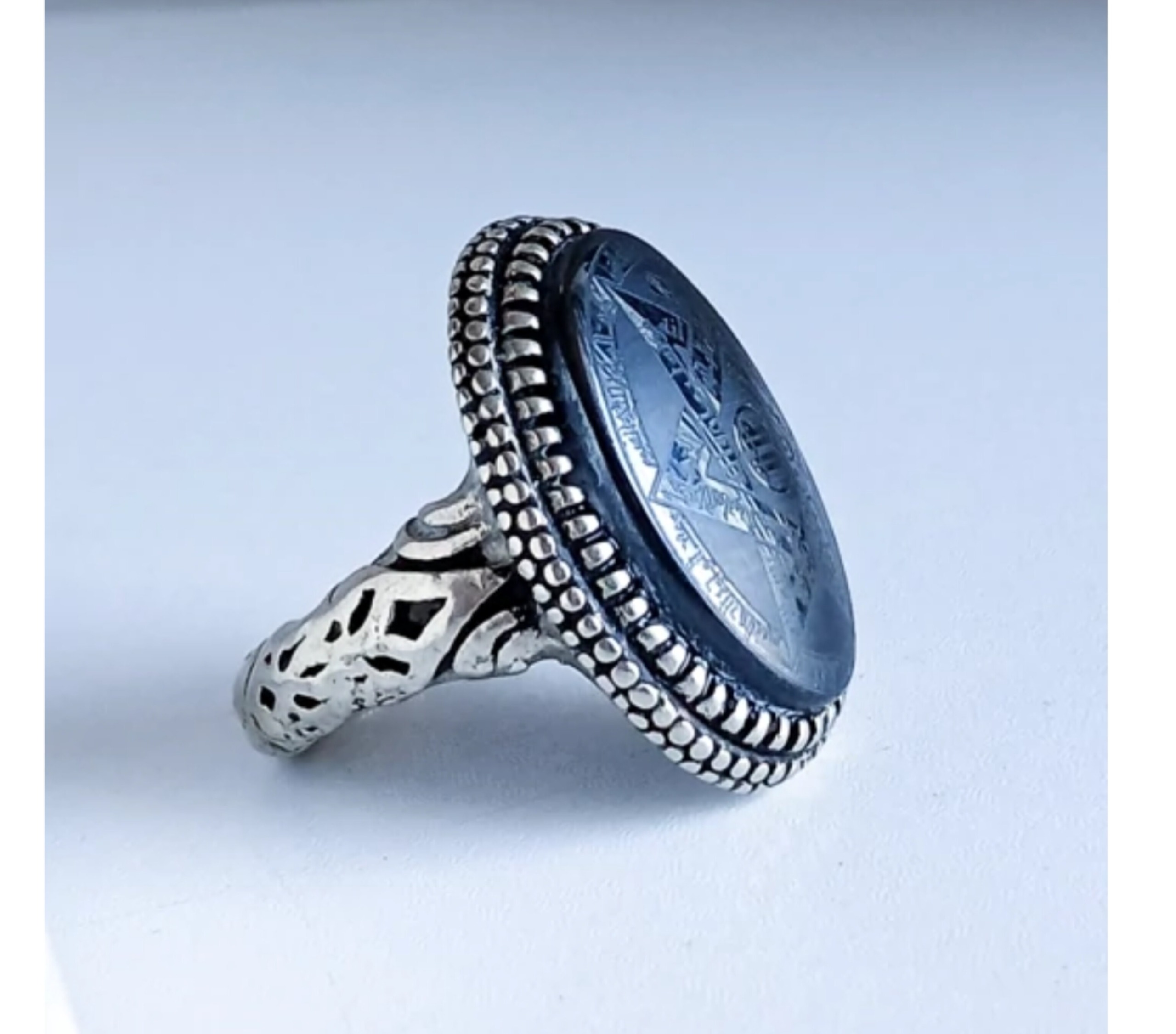 انگشتر حدید صینی ستاره سلیمان اصلی حک تاج