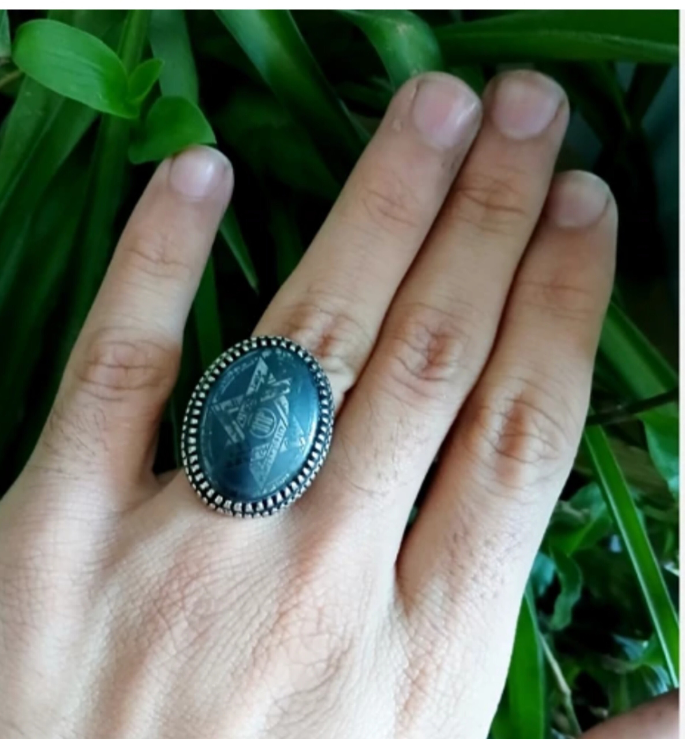 جنس رکاب نقره عیار 74( عیار پایین) آلیاژی ترکیبی کیفیت فوق العاده. نگین اصل معدنی سایز 60 حک تاج