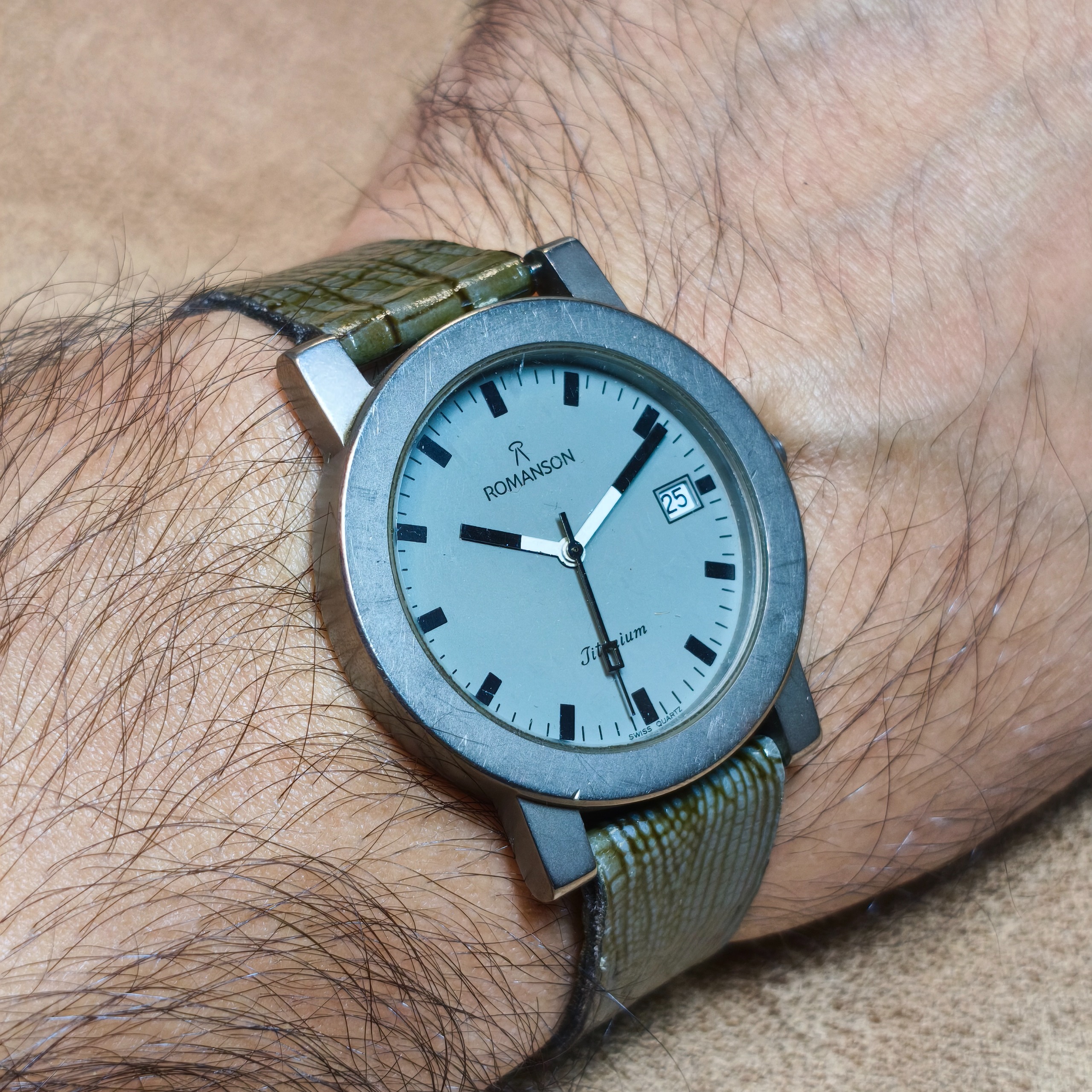ساعت تیتانیوم با پوست بچه تمساح رومانسون نایاب