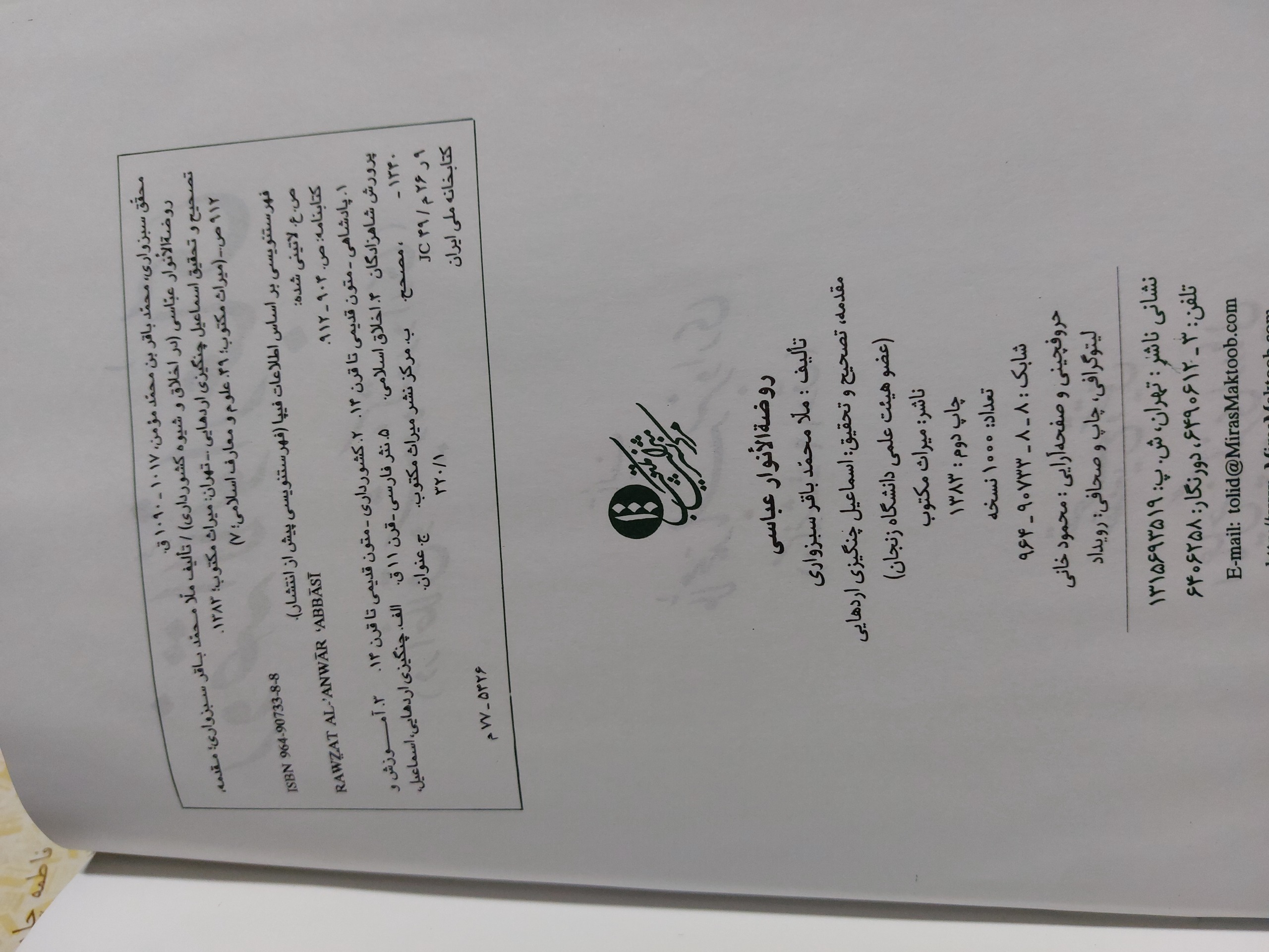 روضه الانوار عباسی (ملا محمدباقر سبزواری)