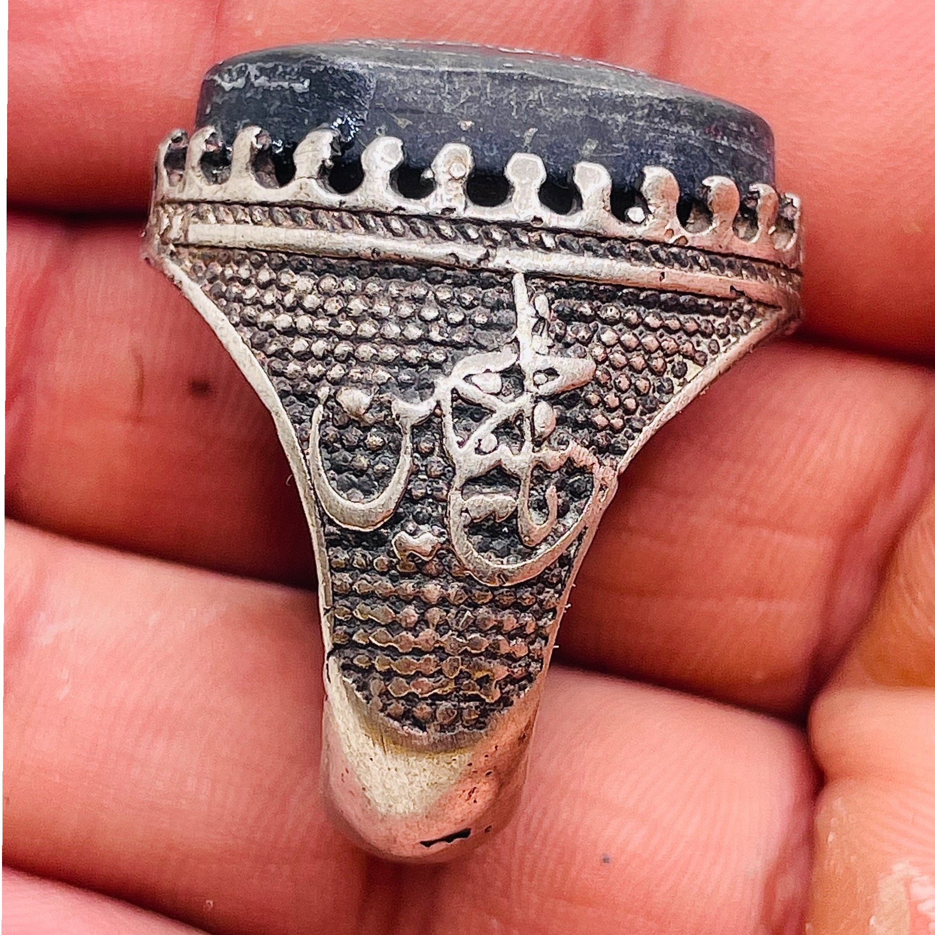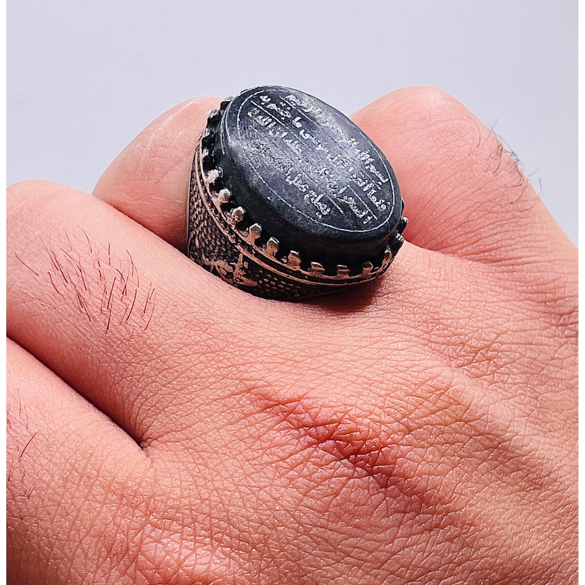 انگشتر حدید درشت خطی حکاکی کار دست عباس ابادی