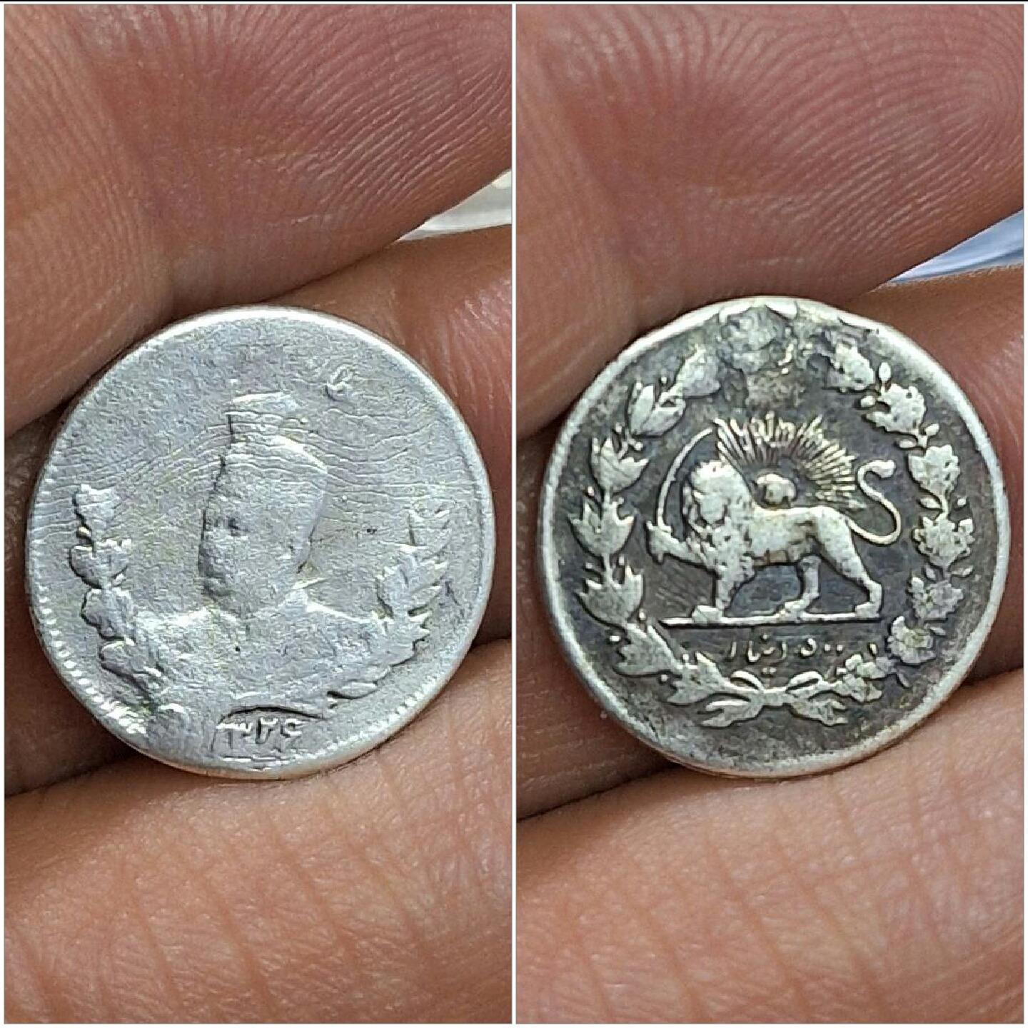 سکه بسیار کمیاب پونصد دینار تصویری محمد عی شاه کیفیت خوب تاریخ 1326
