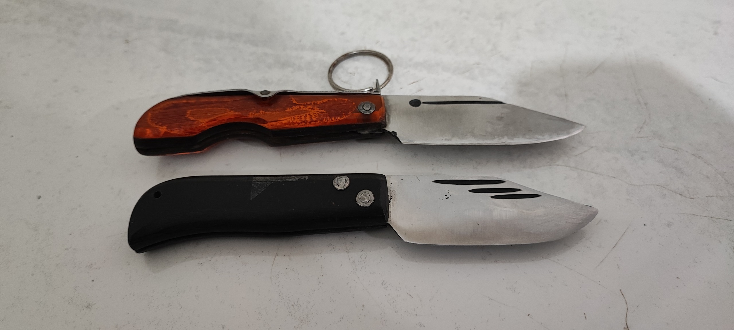 15 و 16/5 سانت طول، تیغ فنر تیز و برنده، بکر و بدون ایراد، کمیاب و کلکسیونی، قیمت برای دو عدد چاقو هست