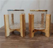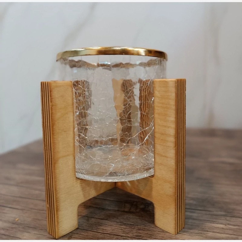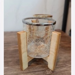 جا قاشقی آبگز تک استند چوبی ، فلز طلایی و نقره ای قطر استوانه= 10 سانت آبکاری فلز فورتیک ورنگ ثابت جنس چوب= چوب روس 15 میل