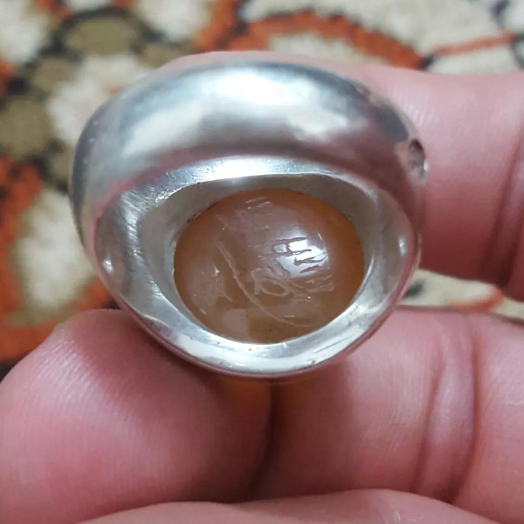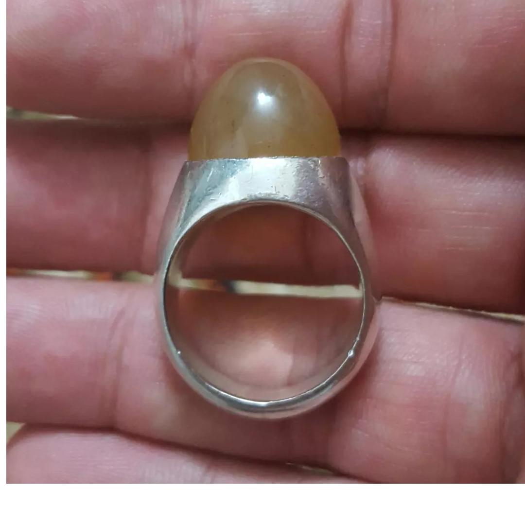 عقیق زرد خوش قواره و آبدار با رکاب دست سازسنگین مارک صبا