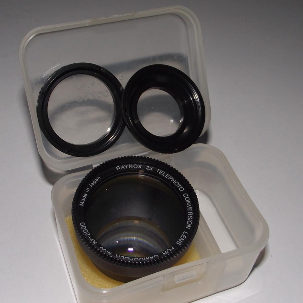 RAYNOX 2X TELEPHOTO CONVERSION LENS FOR CAMCORDER MOD.AF_2000 توضیحاتی هست که روی لنز حک شده و به نظر می آید به عنوان یک تبدیل استفاده میشود.