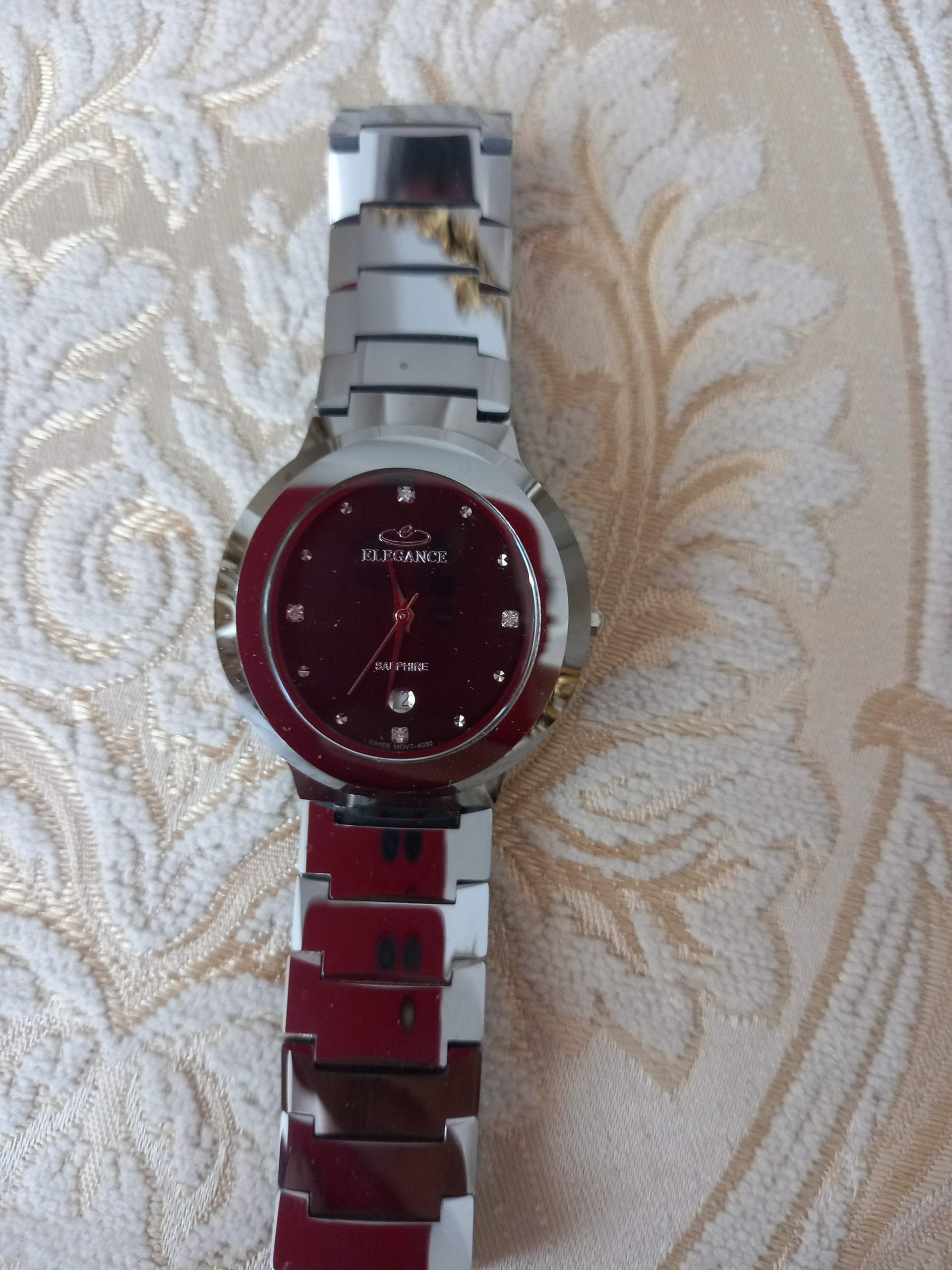 سلام ساعت الگانس در حد نو و تقویم دار وبند سرامیکی بسیار زیبا