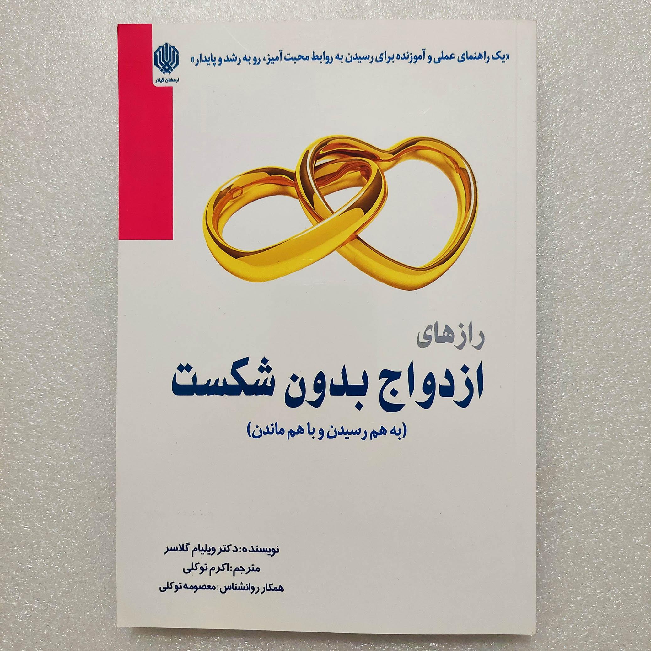 کتاب رازهای ازدواج بدون شکست اثر دکتر ویلیام گلاسر ترجمه اکرم توکلی - نشر ارمغان گیلار - جلد شومیز - کاغذ بالکی - 160 صفحه - قیمت روی جلد: 192.000 ت